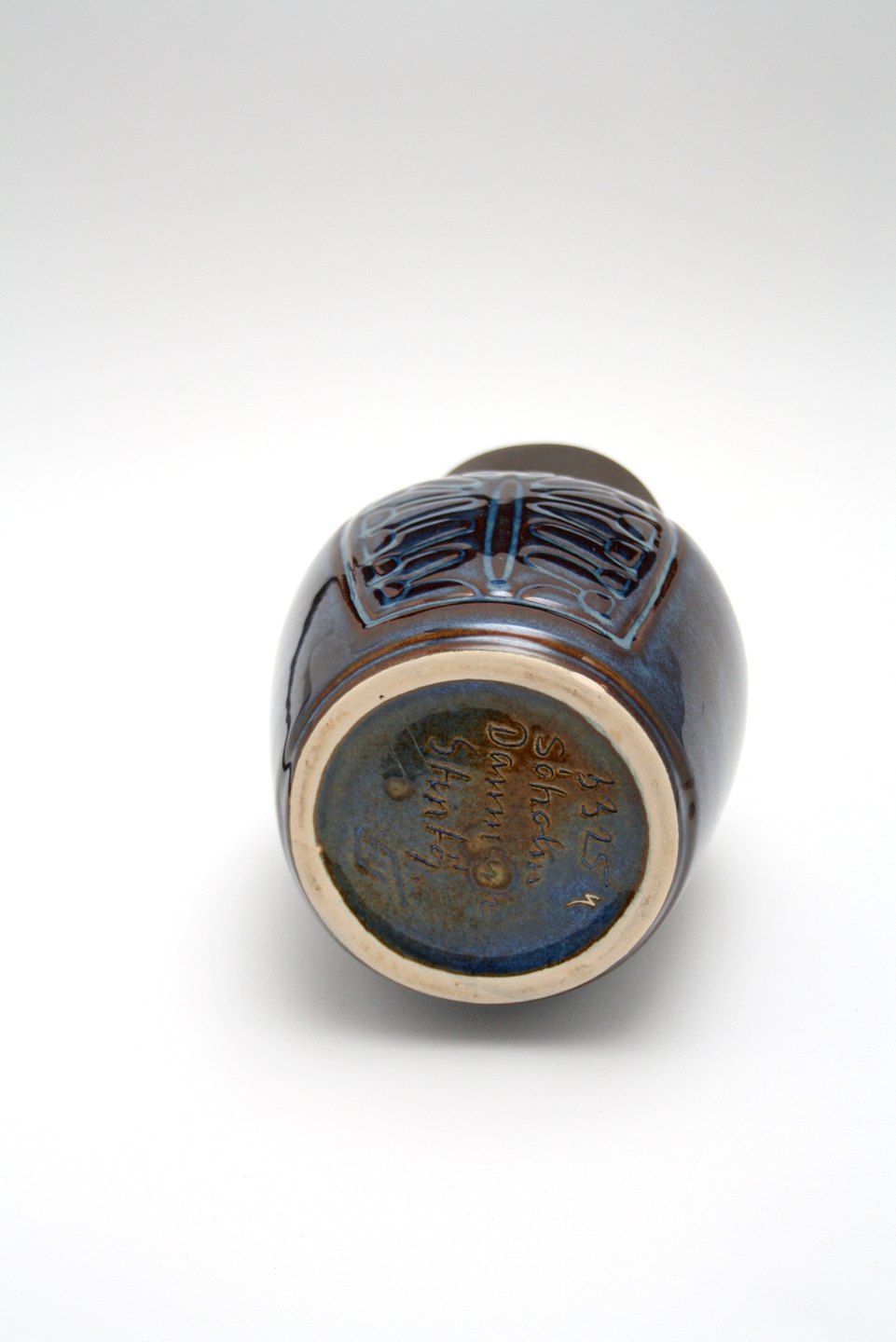 Søholm, Blåglaseret vase med mat ru hals og top. Designet af Einar Johansen. Nr. 3325. Højde 18 cm. Øverste diameter 8 cm. Pris: 350 kr. stk. Lager: 1