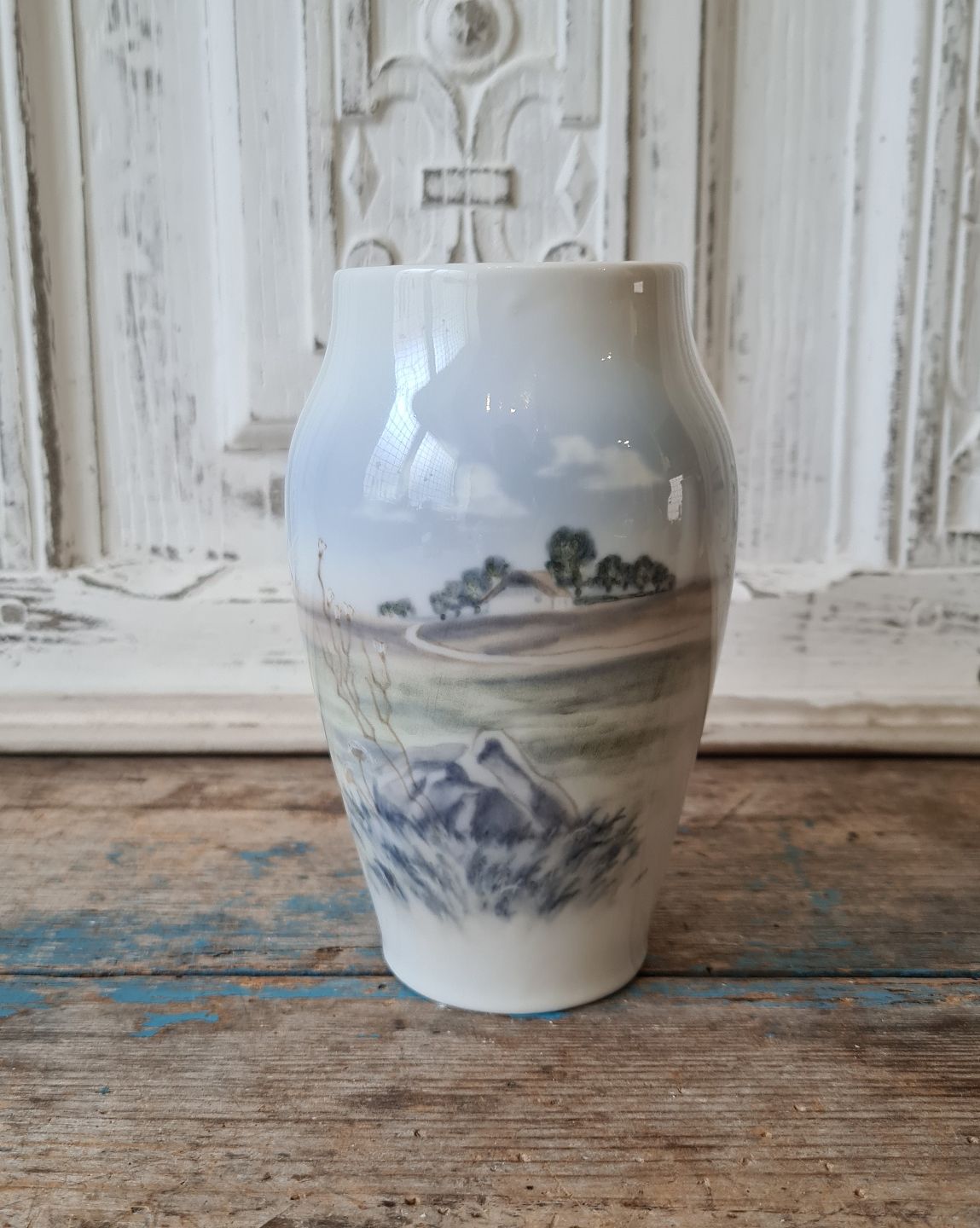 Royal Copenhagen vase dekoreret med landskabsmotiv