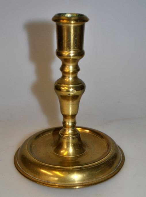 Næstved candlestick in brass, 18./19. century Denmark. Round foot and profiled trunk. Remains of master mark. H .: 13 cm.