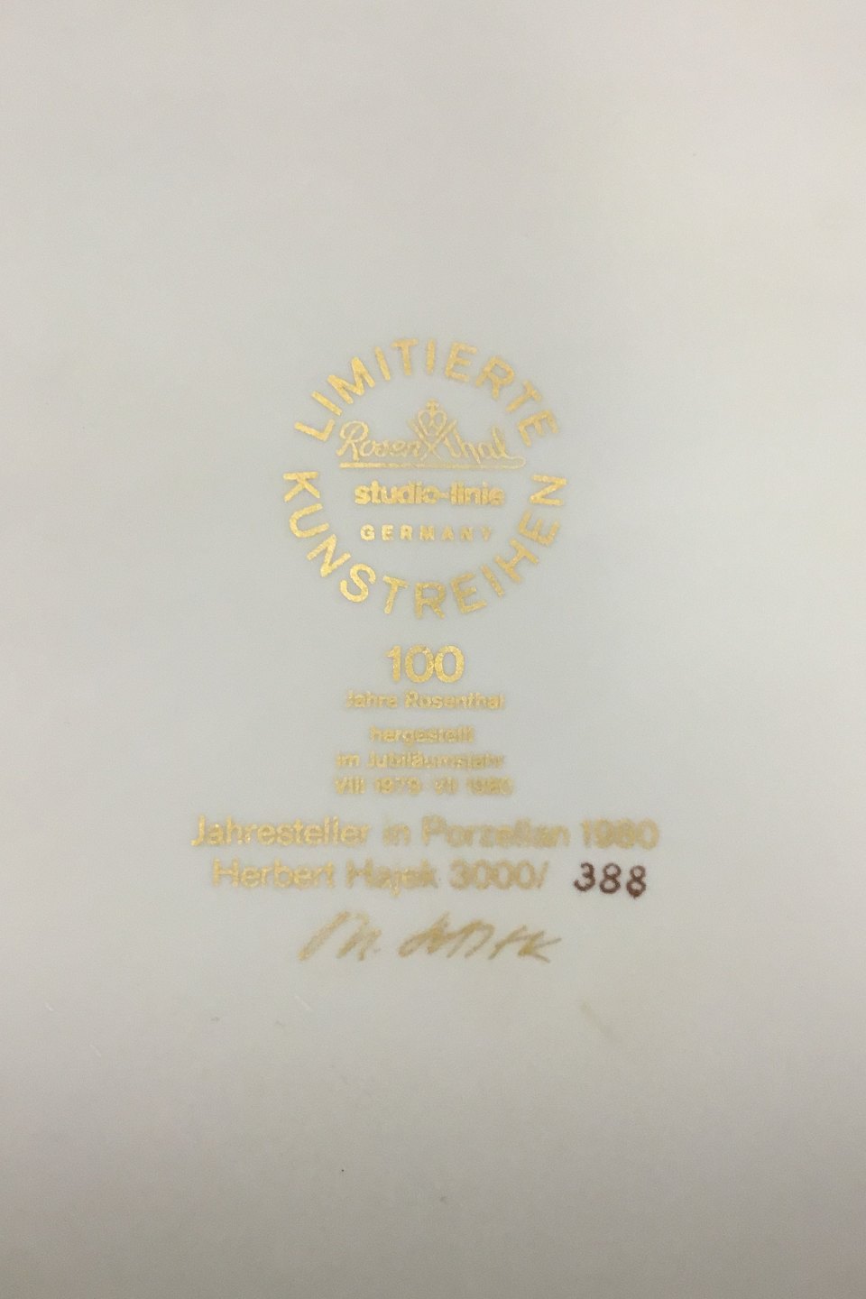 Rosenthal Årsplatte 1980 No 3000/388. Designet af Herbert Hajek. Abstrakt geometrisk motiv i farvet porcelæn. Måler 36 x 36 cm (14 11/64 x 14 11/64 in).