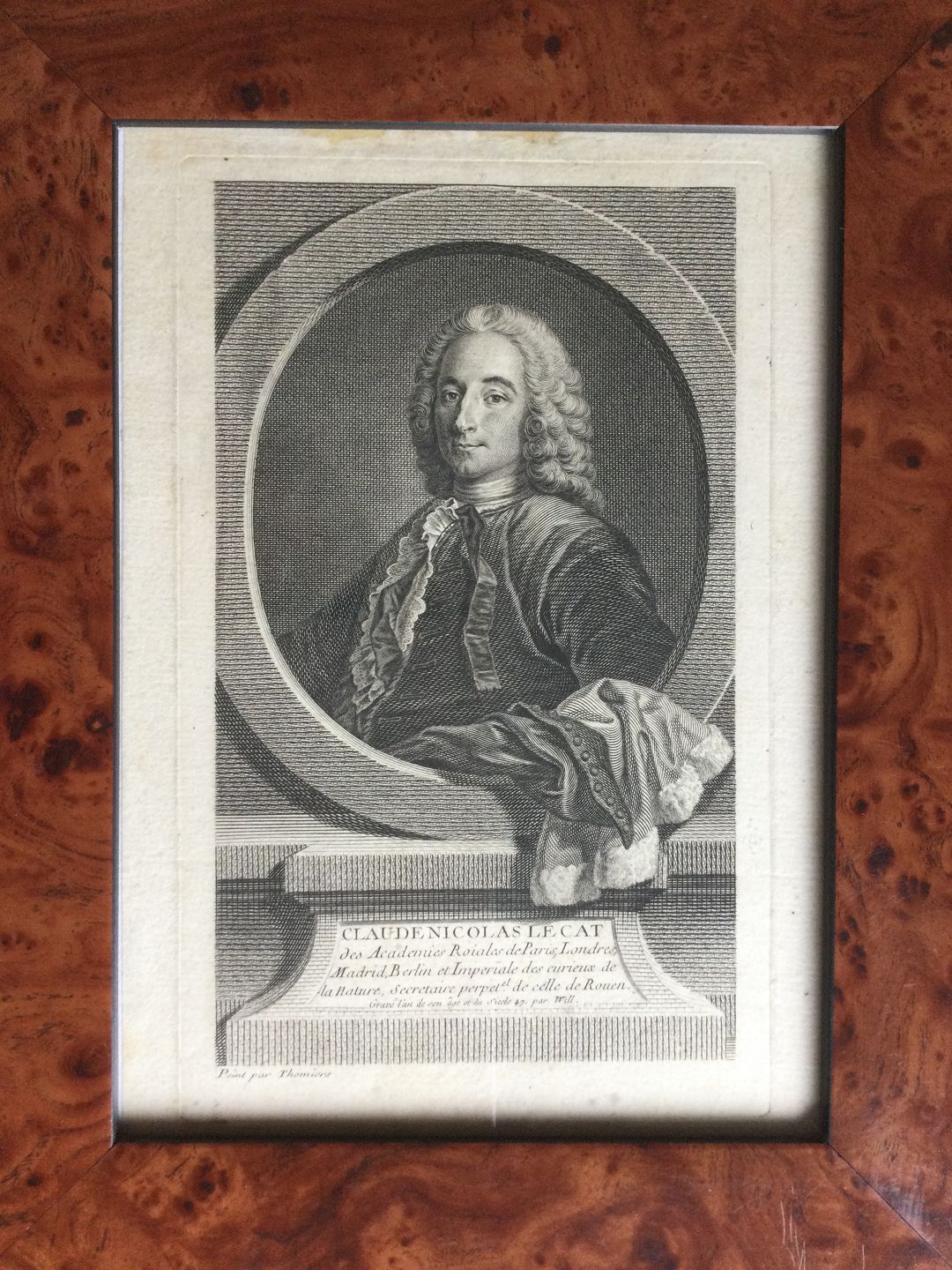 Kobberstik af Jean Georges Wille - Portræt af Kirurg Claude Nicolas Le Cat 1747.