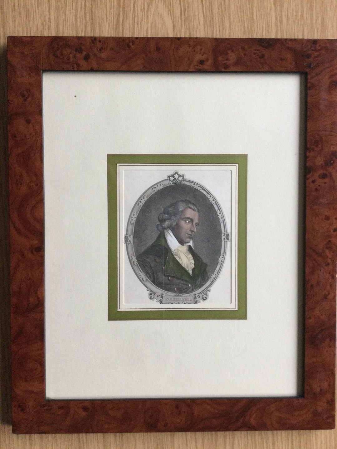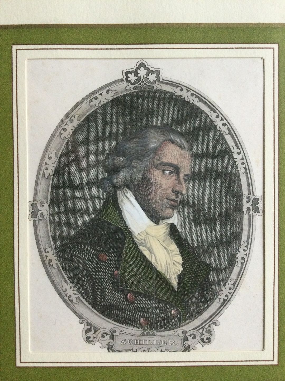 Koloreret stålstik af Johann Kracker - Portræt af Freidrich Schiller.
