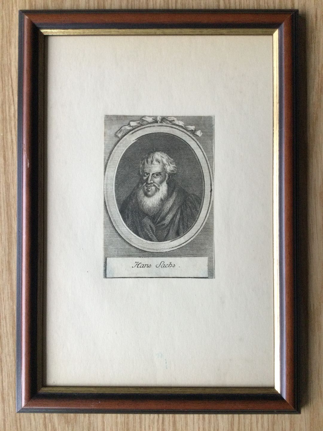 Kobberstik - Portræt af Digteren Hans Sachs ca. 1750.