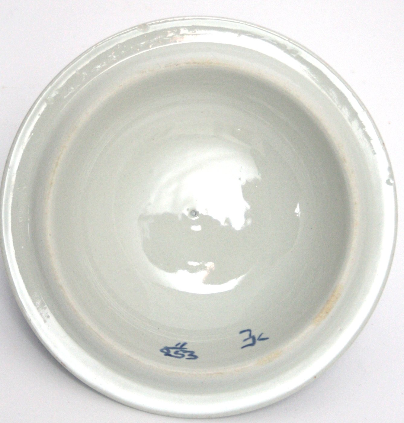 Sukkerskål med låg. Nr. 11/963. Højde 10 cm. Diameter 10 cm. God stand med mikroskopisk chip på inderside af låg. Pris: 275 kr.