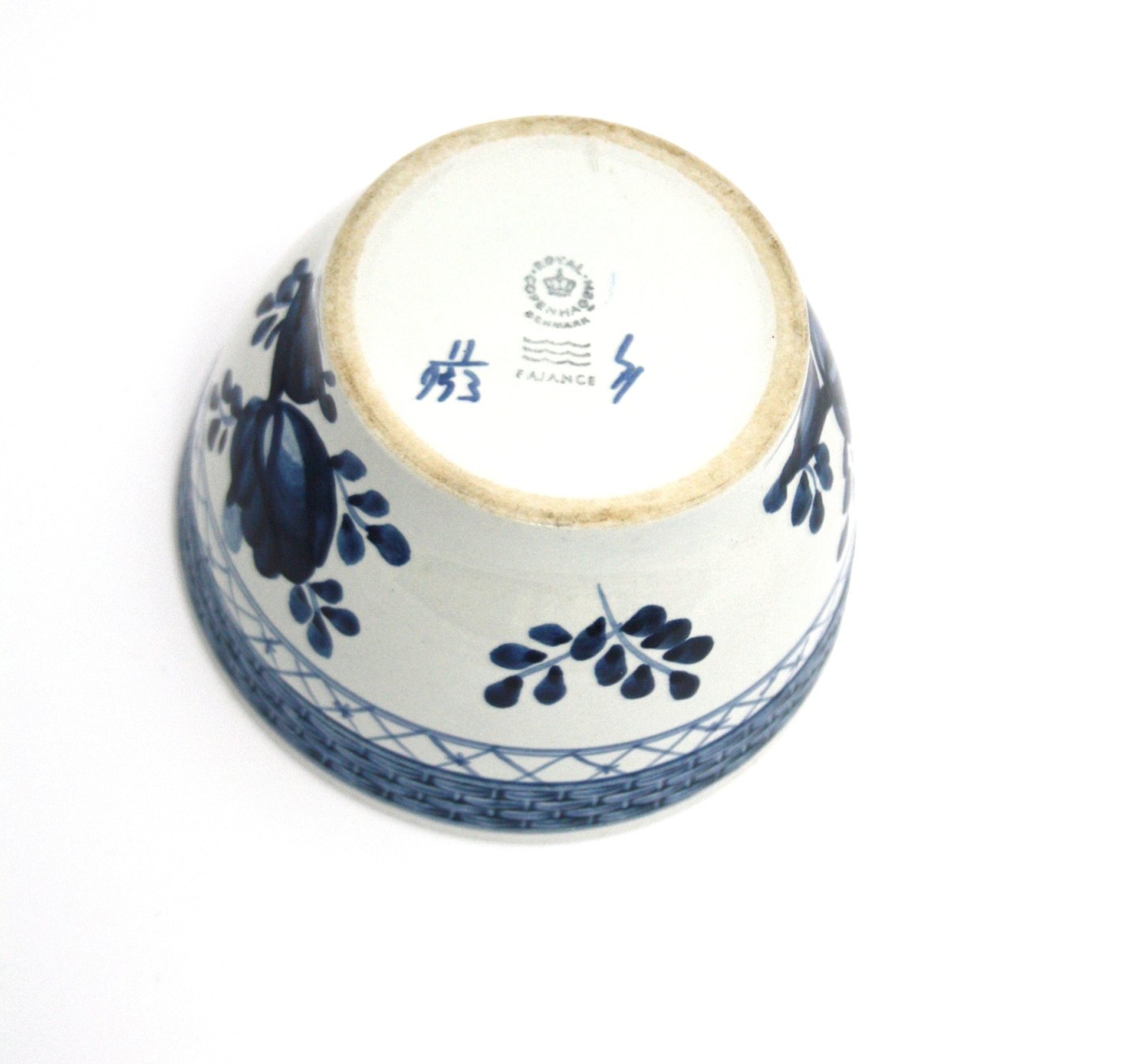 Royal Copenhagen, Tranquebar lyseblå fajance med mørkeblå tulipan og flettet bort designet af Christian Joachim. Produceret fra 1914 til 1969 på Aluminiafabrikken, derefter overgik det til Royal Copenhagen.