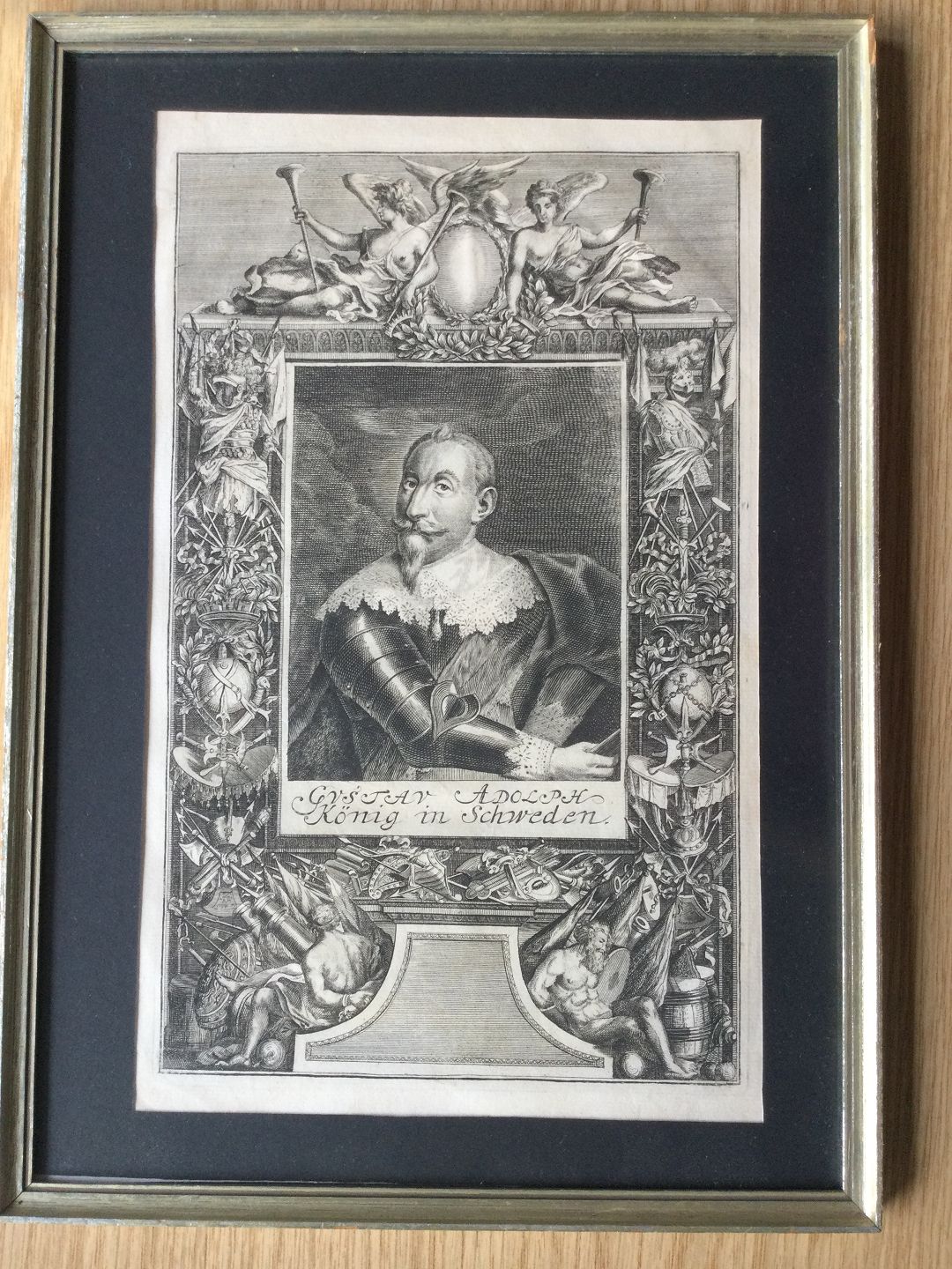 Kobberstik - Portræt af HM Kong Gustav II Adolf af Sverige.