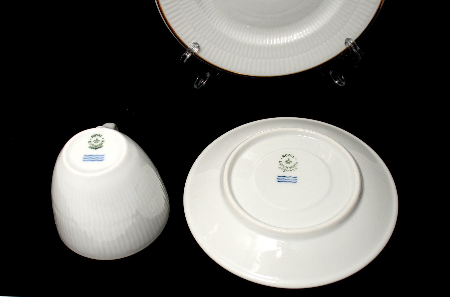 Kaffekop og kagetallerken, Hvid riflet, Jernporcelæn, Royal Copenhagen