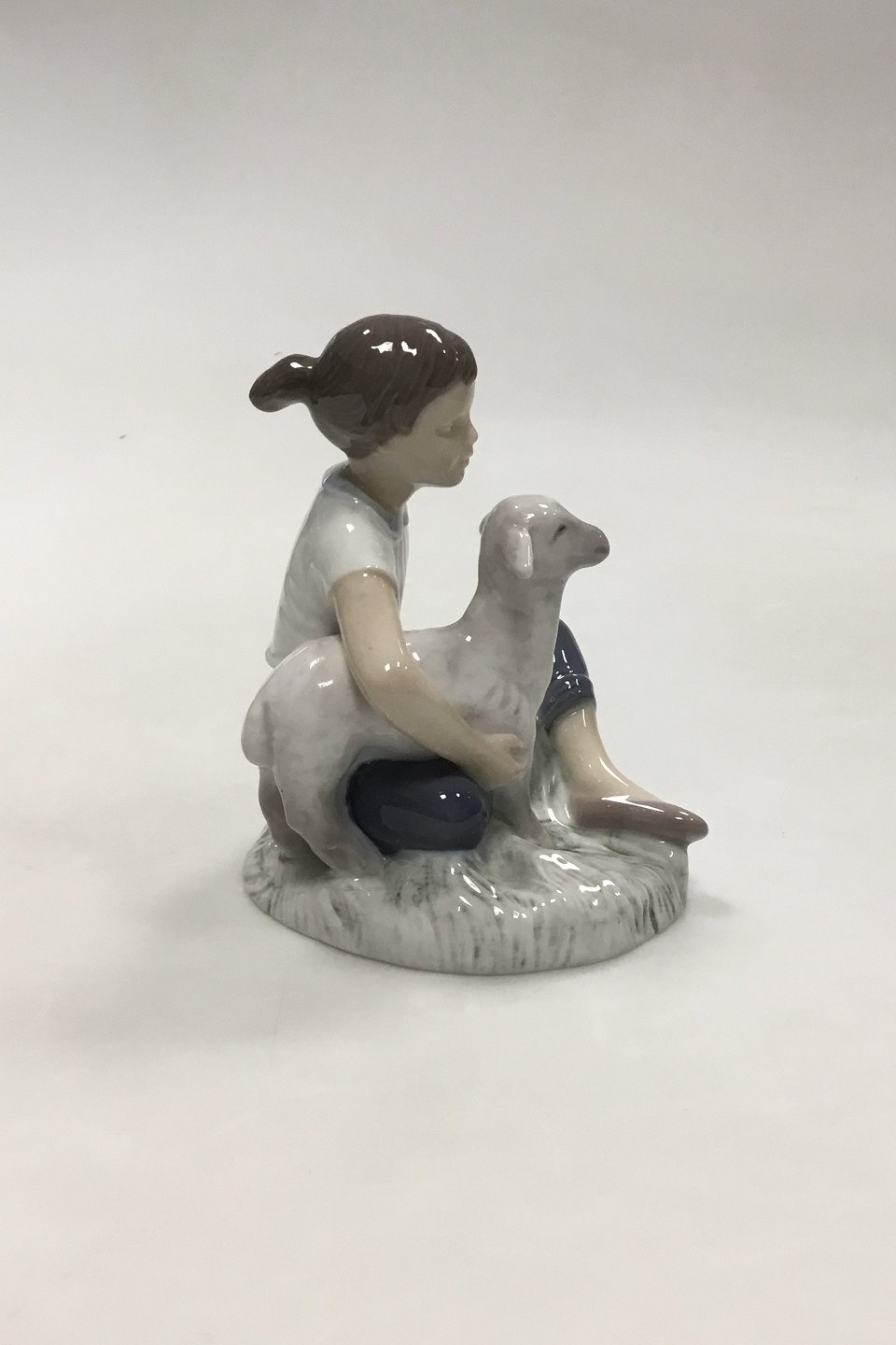 Bing og Grøndahl Figur af Pige med lam No 2336. Måler 13 cm ( 5 1/8 in. )