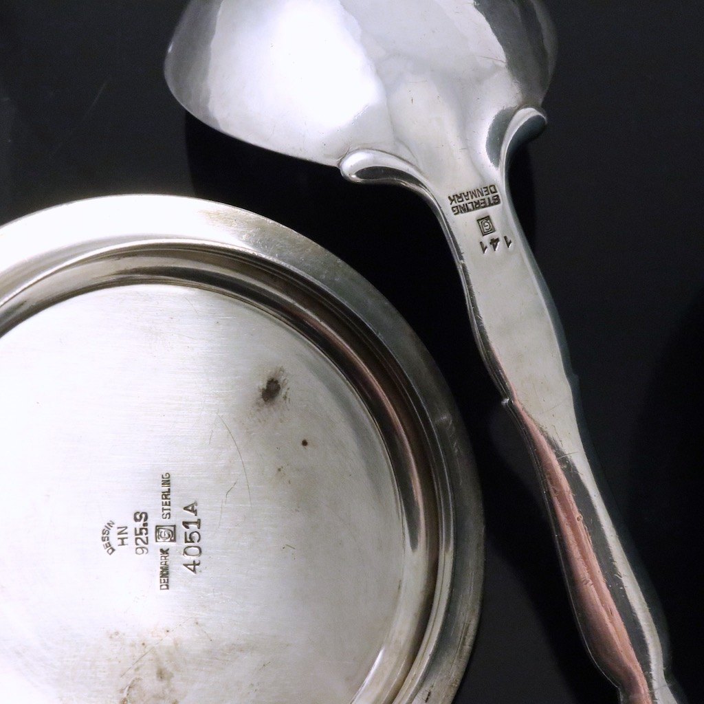 Låg samt ske i sterling sølv tegnet af Harald Nielsen 1892 - 1977 og udført hos Georg Jensen.