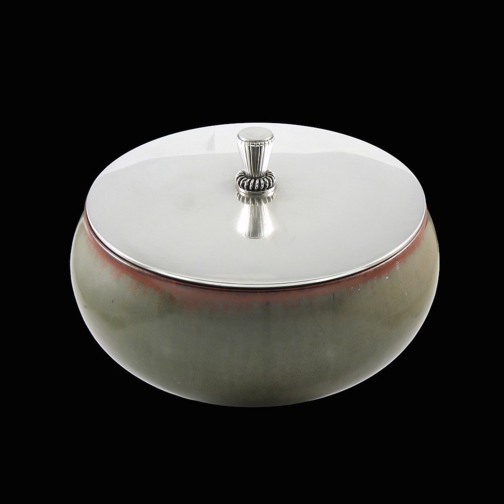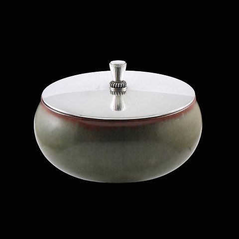 Saxbo - C.C. Hermann. Large Stoneware Jar with Sterling Silver Lid.