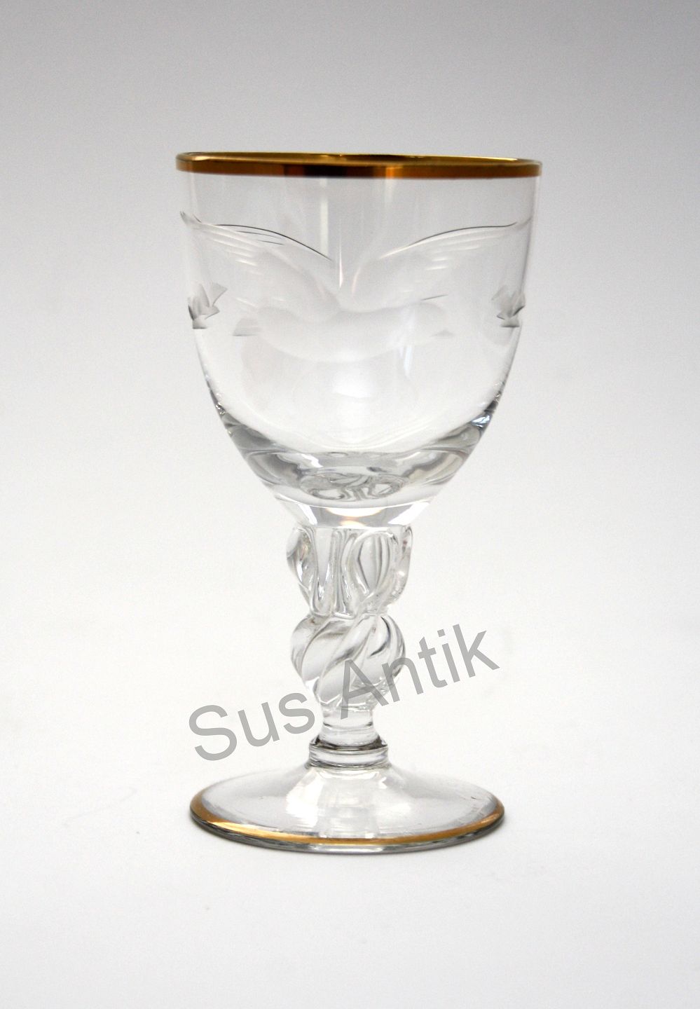 Text available in Danish: Lyngby glas, Måge glas med guldkant og mågeslibning.