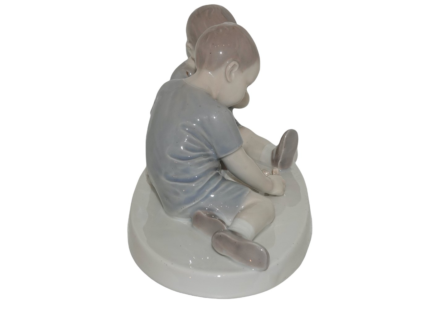 Sjælden Bing & Grøndahl figur, to drenge leger med klodser.