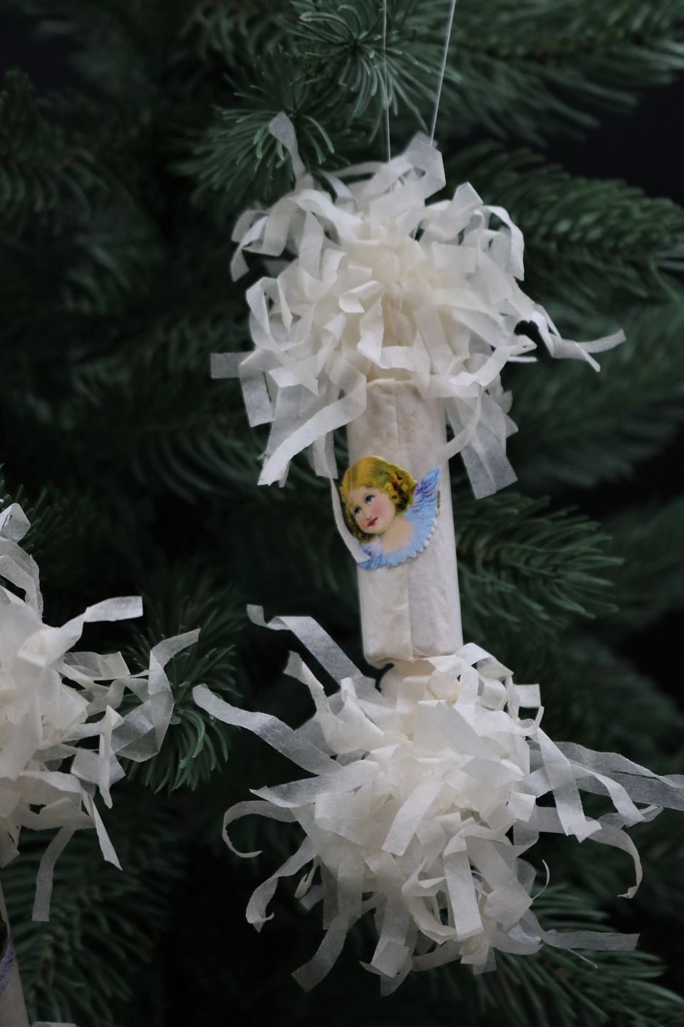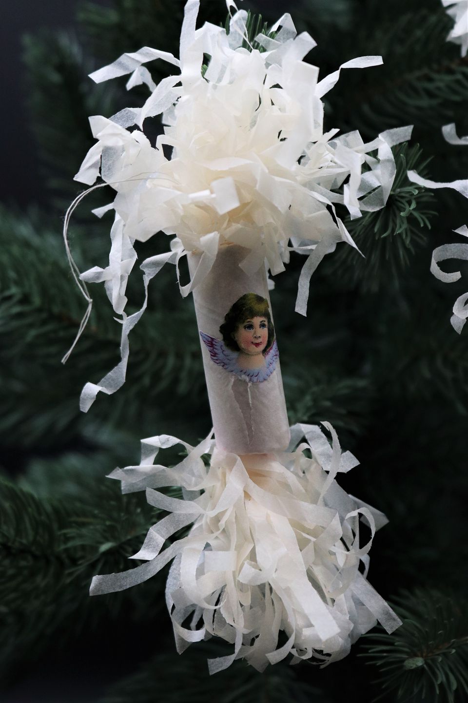 Juletræspynt i pap , glaspapir og engle glansbillede.