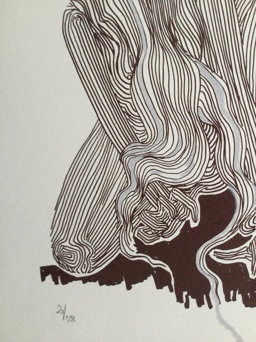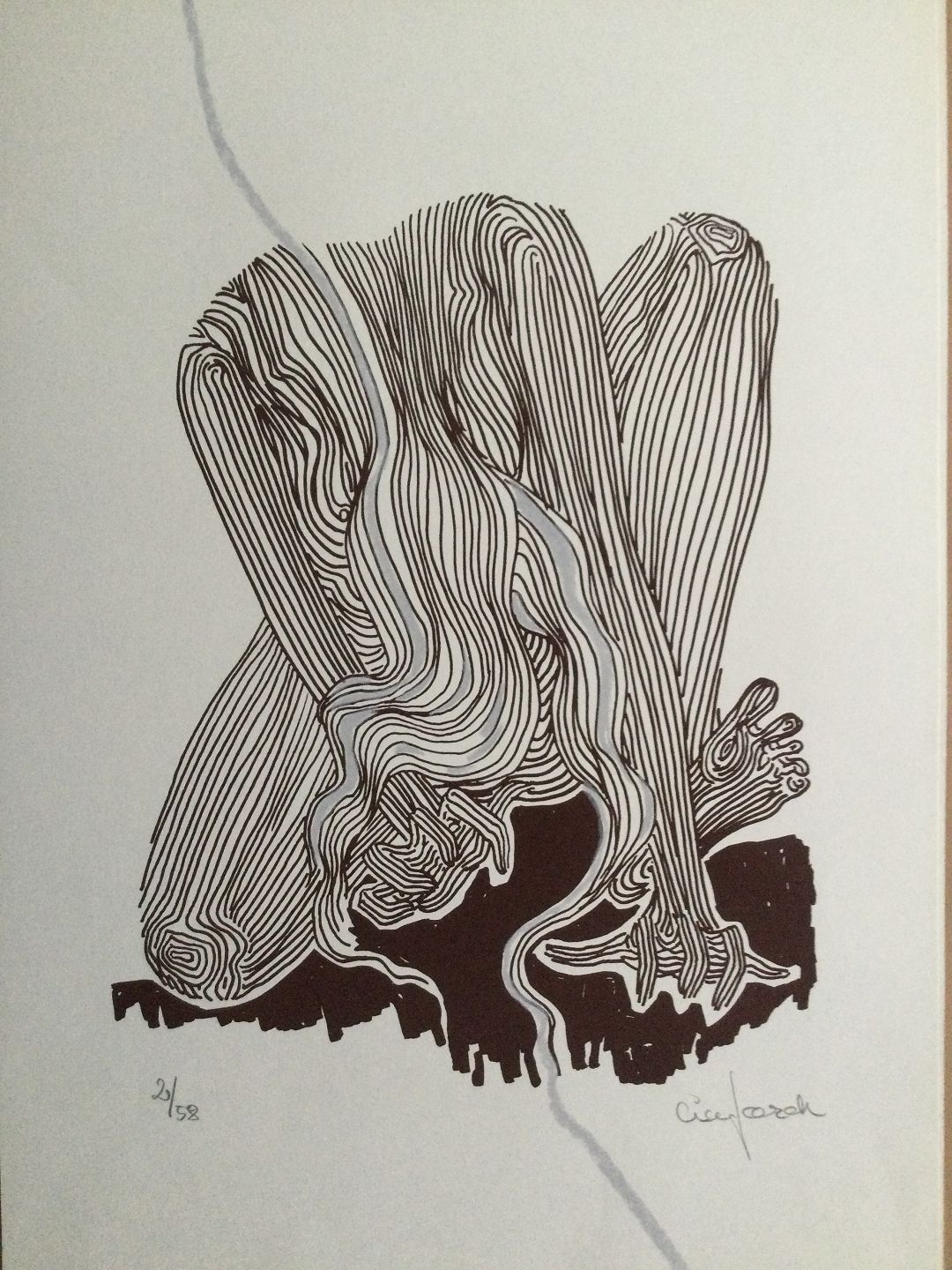 Litografi af Lise Færch - komposition "Angst".