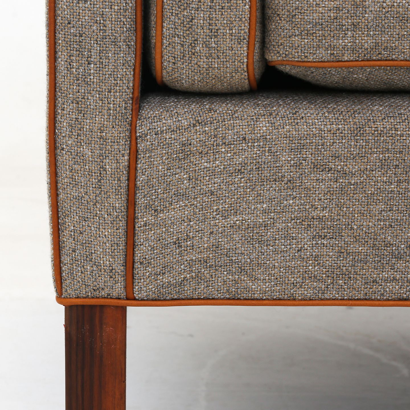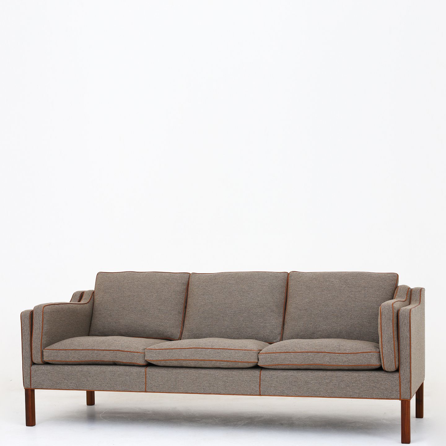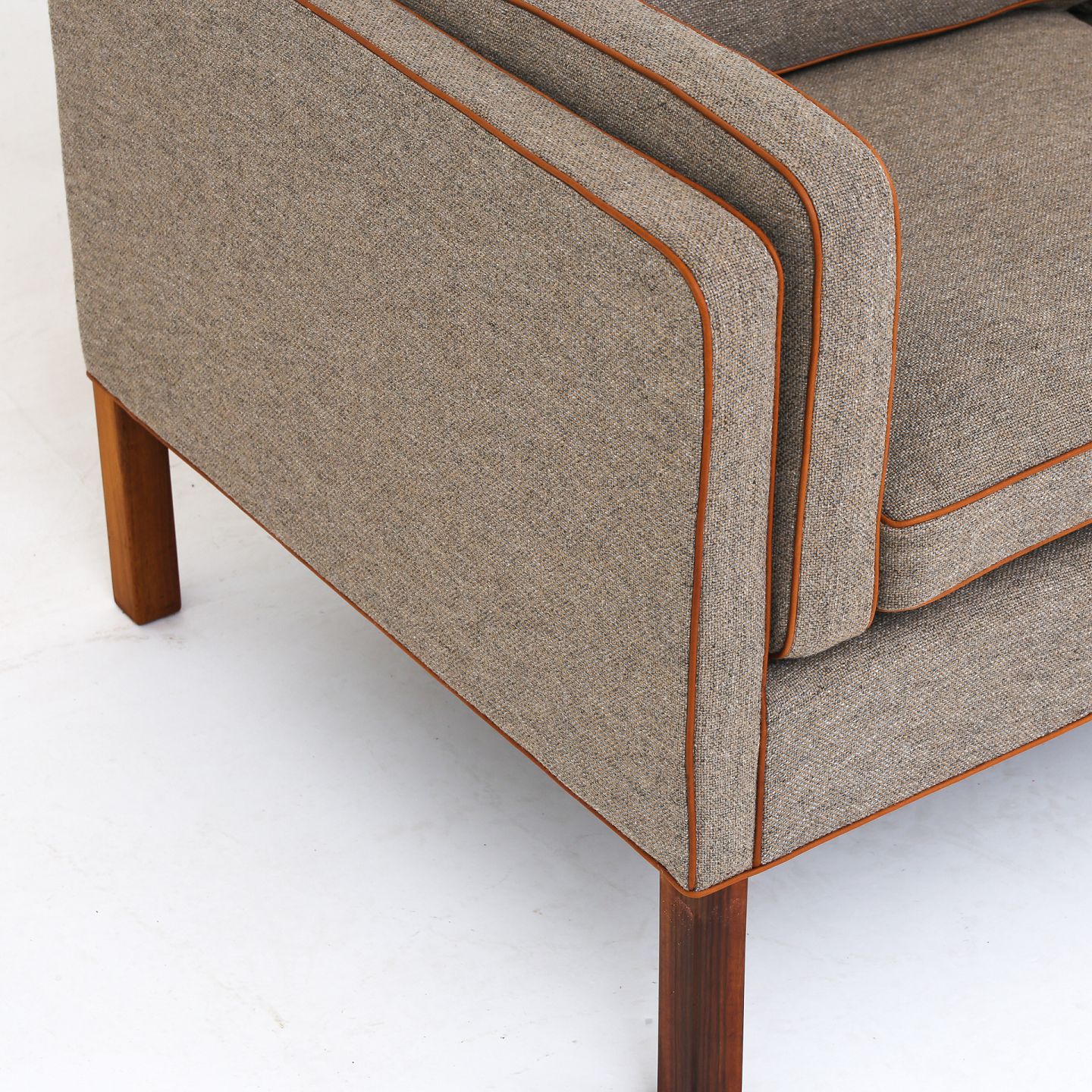 BM 2213 - 3 pers. sofa i nyt tekstil (Hallingdal 65, farvekode 227) med keder i anilinlæder (Klassik Cognac). KLASSIK tilbyder sofaen i tekstil og læder efter eget valg. Kontakt os venligst for mere information.