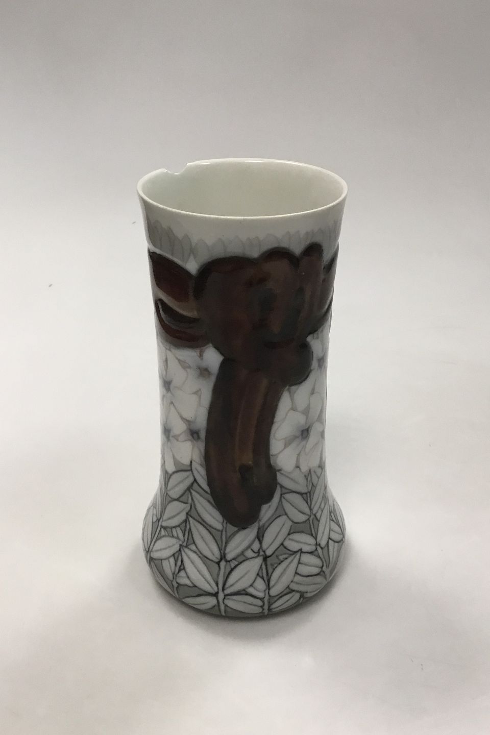 Bing og Grøndahl Unika Art Nouveau vase med blomsterdekoration. Signeret af Jo Hahn Locher No 172. Måler 20,4 cm ( 8 1/32 in. ). Afslag på kanten