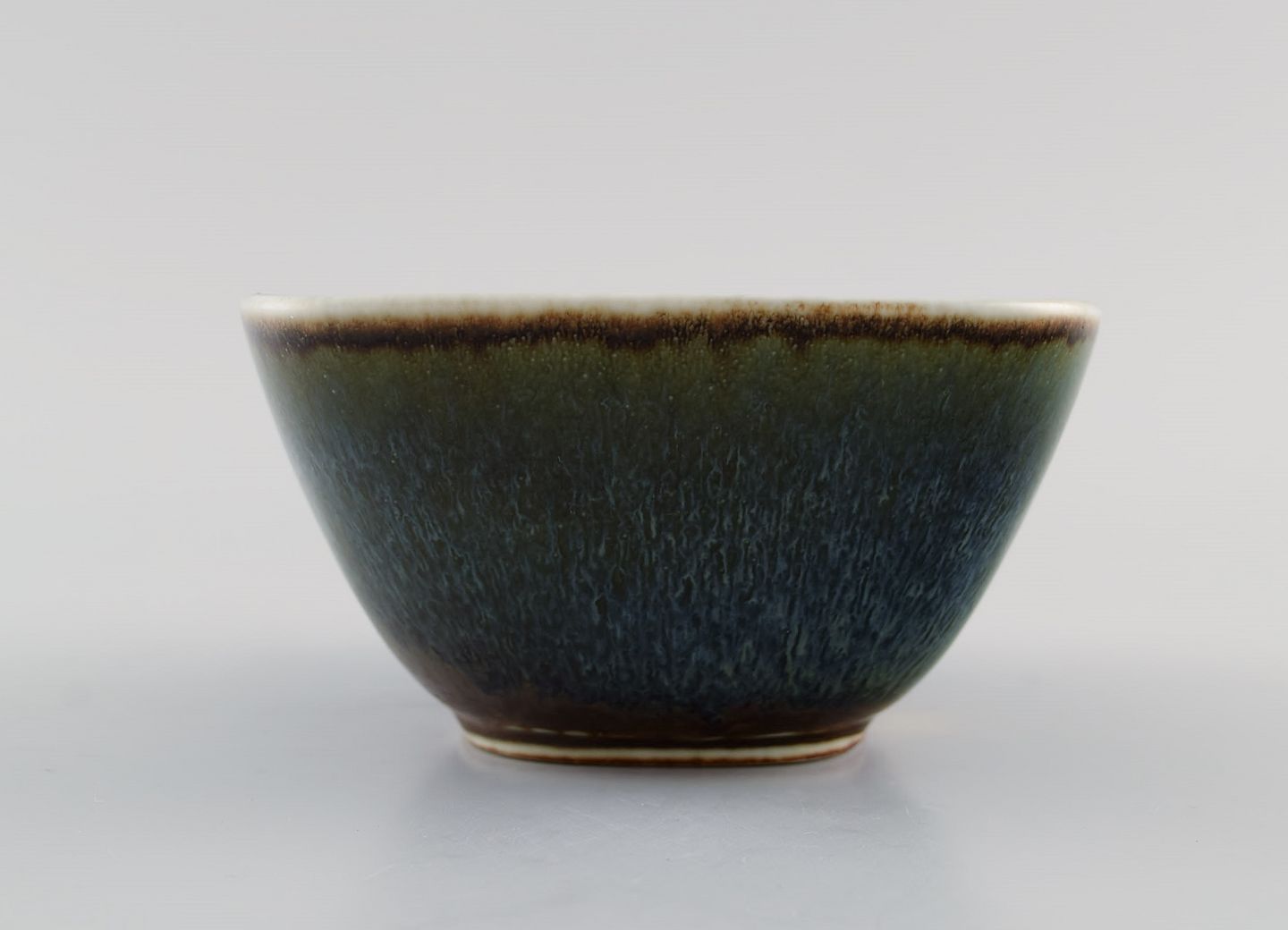 Gunnar Nylund (1904-1997) for Rörstrand. Skål i glaseret keramik. Smuk glasur i blågrønne og brune nuancer. Midt 1900-tallet.