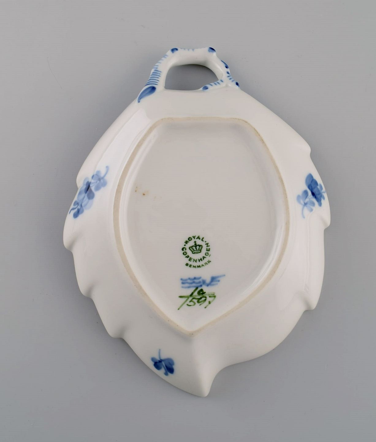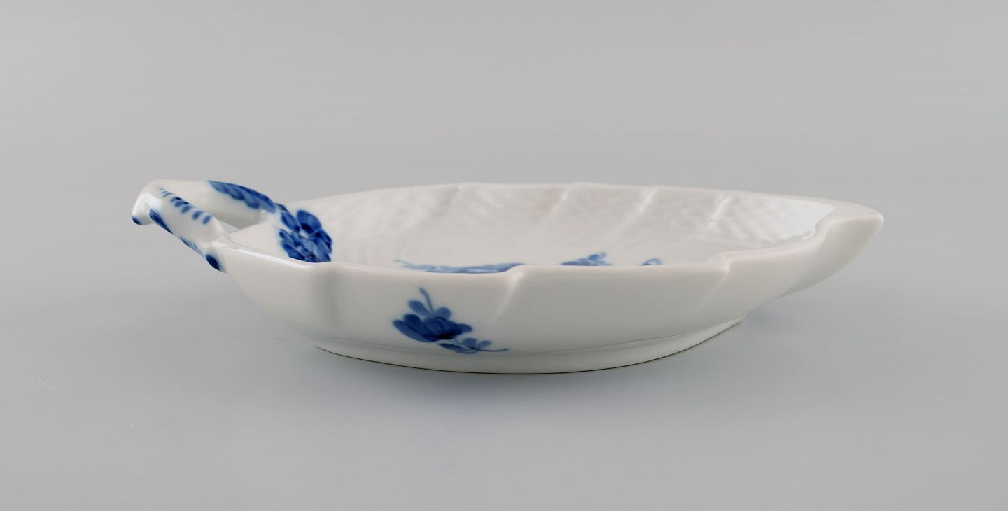 Royal Copenhagen Blå Blomst Flettet bladformet skål. Modelnummer 10/1597. Dateret 1969-1974.