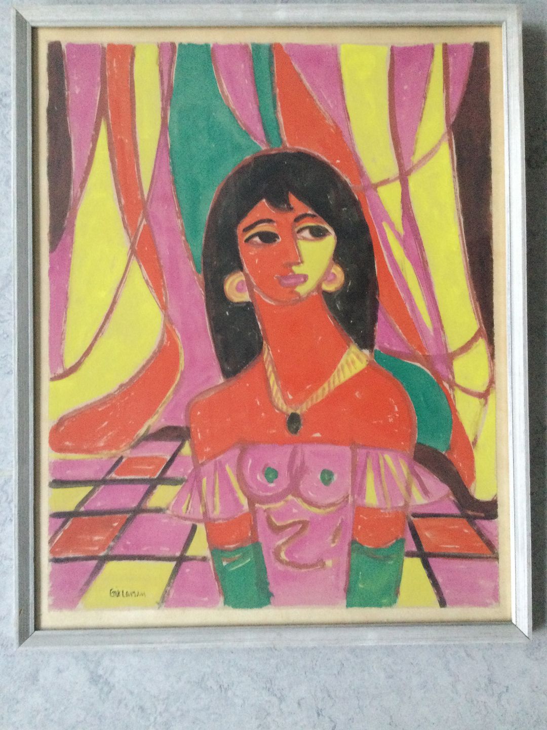 Pastel af Erik Larsen - Kvinde i cirkusmanege.