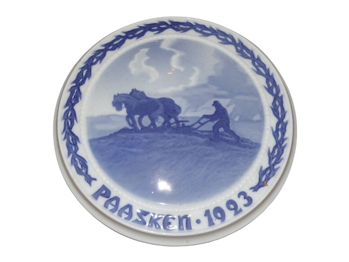 Bing & Grøndahl Påskeplatte fra 1923 - bonde pløjer mark med heste.
