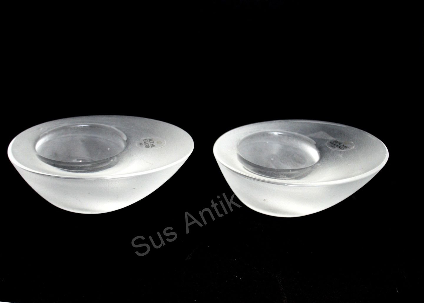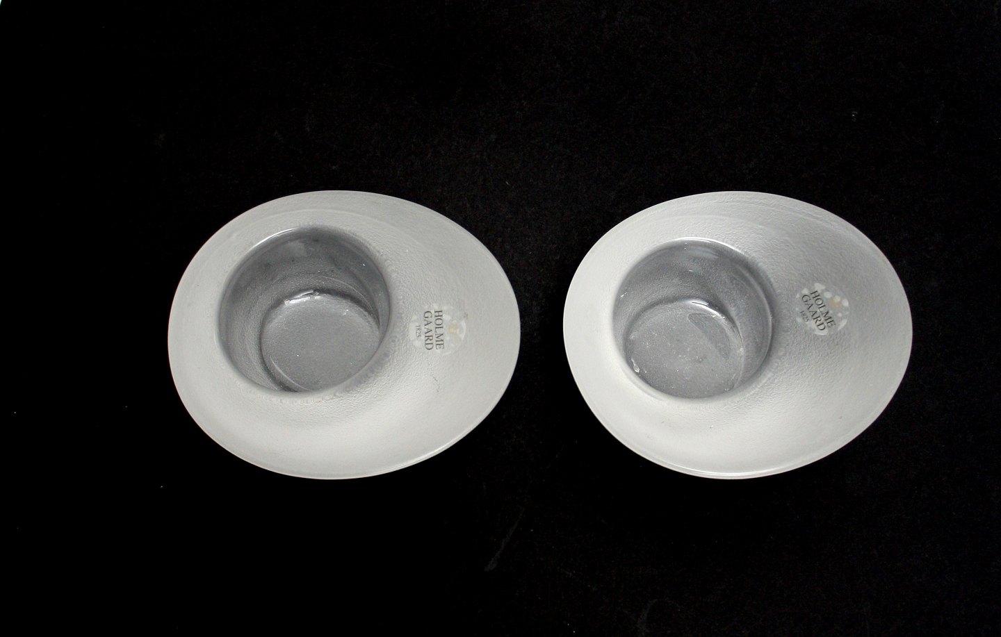 Holmegaard, Fyrfadsstage matteret glas. Højde 4,5 cm. Længde 11,5 cm. Lettere brugsslid. Sælges som sæt. Pris: 125 kr. samlet
