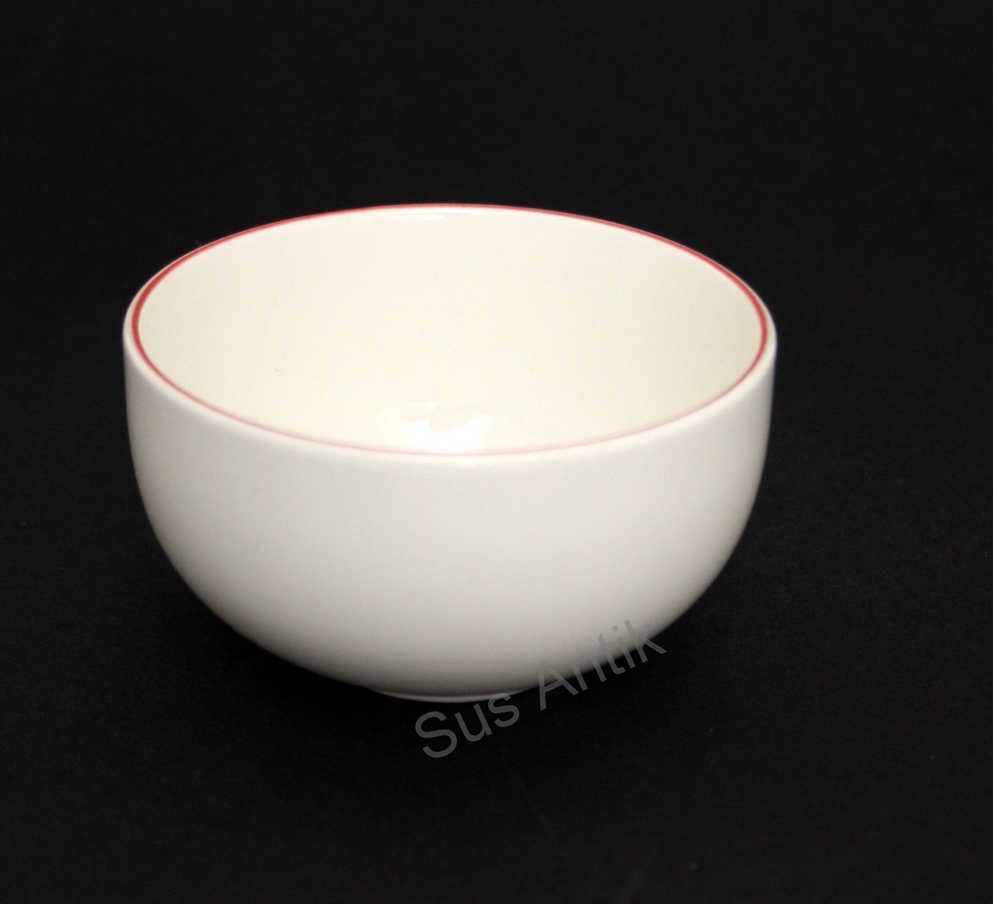 Royal Copenhagen fajance, Rødtop, Sukkerskål eller lille skål med rød kant. Diameter 8,5 cm. Højde 4,7 cm. Nr. 3042-4. Pris: 150 kr. stk. Lager: 7