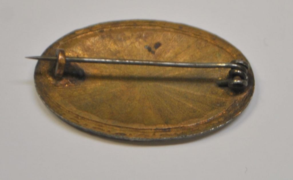 Emalje brosche med roser, oval, 19. årh. Med nål. Emalje på messing. L.: 3,2 cm. H.: 2 cm.