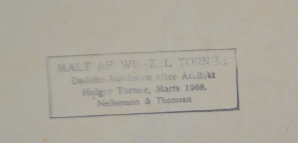 Verso stempel fra Dødsboauktionen efter Arkitekt Holger Tornøe, Marts 1968.