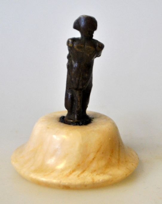 Miniature bronze figur, helportræt af Napoleon, 19. årh. Frankrig. På rund fod af lys alabast. H.: 5,5 cm.