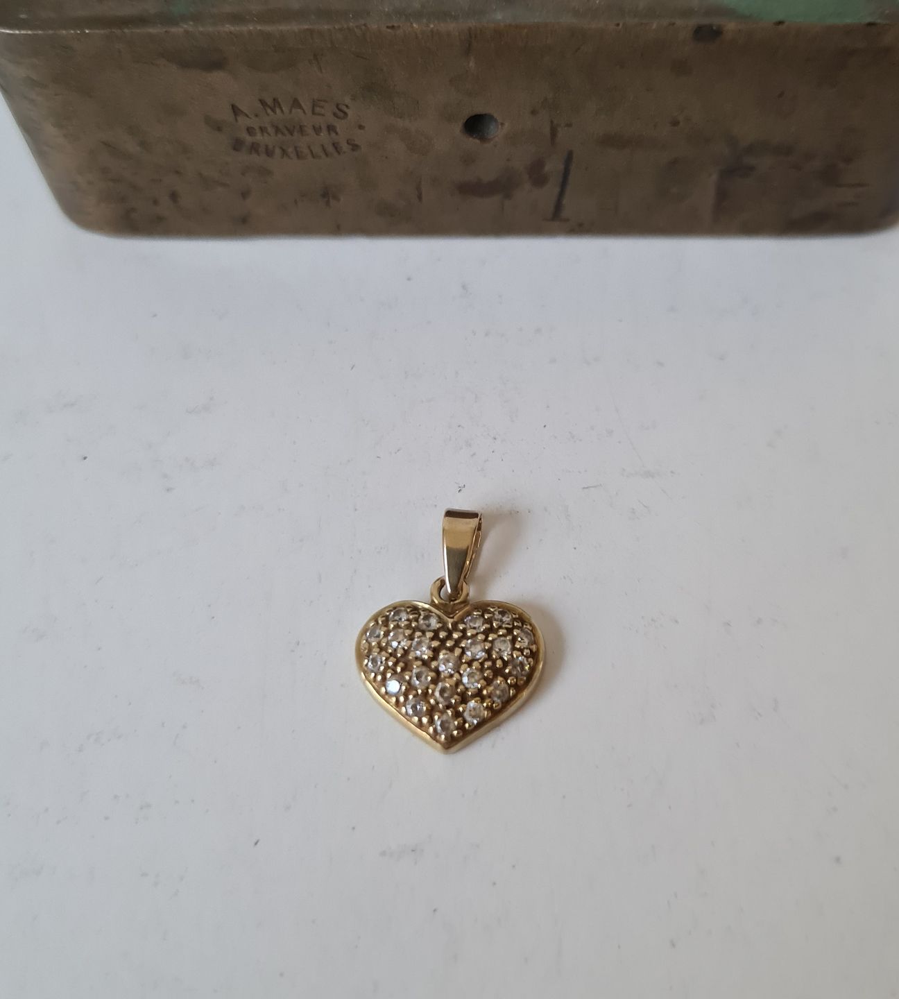 Hjerte vedhæng i 8 kt guld med talrige zirkoner
