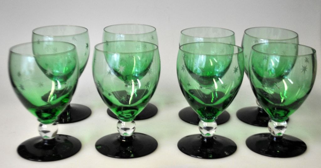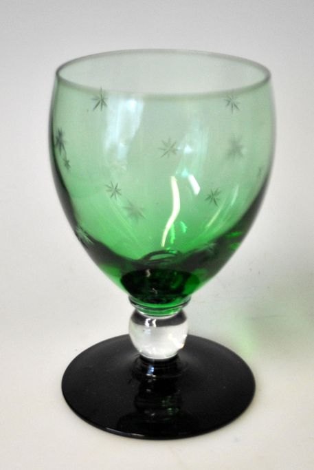 Green white wine star glass with black base, 20th century Holmegård, Denmark.