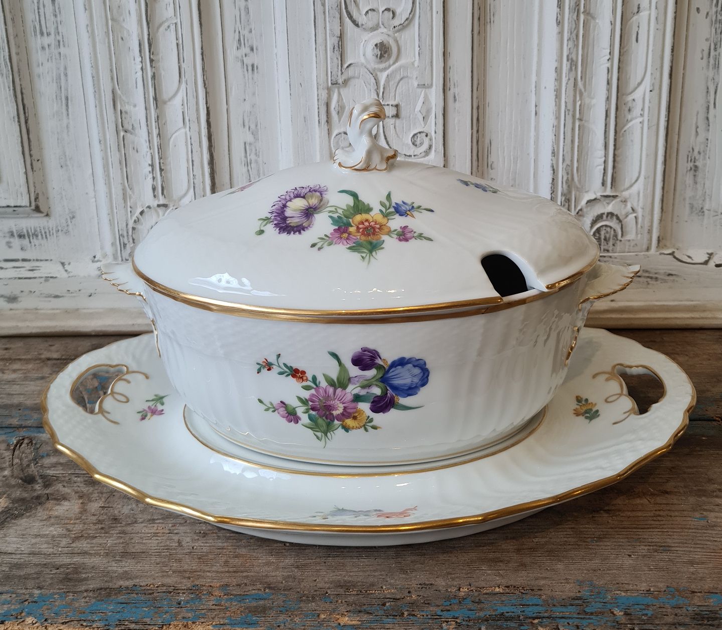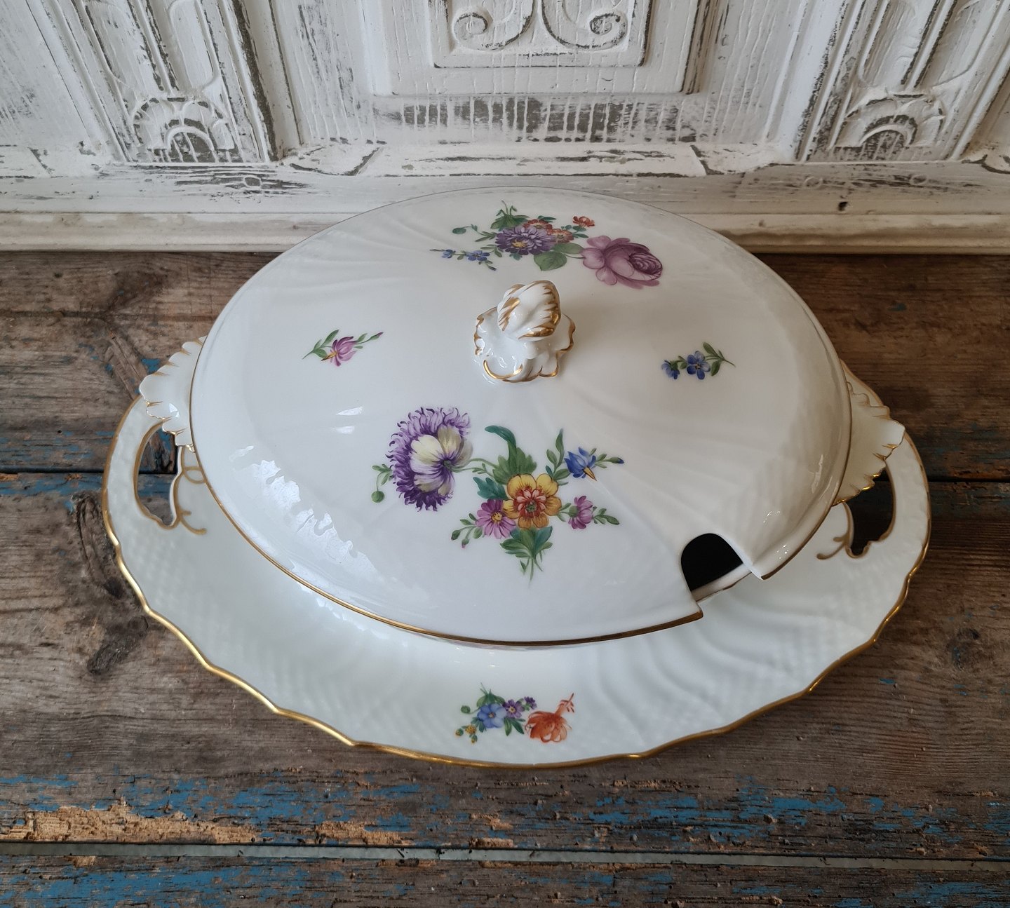 Royal Copenhagen Let Saksisk Blomst terrin med underfad