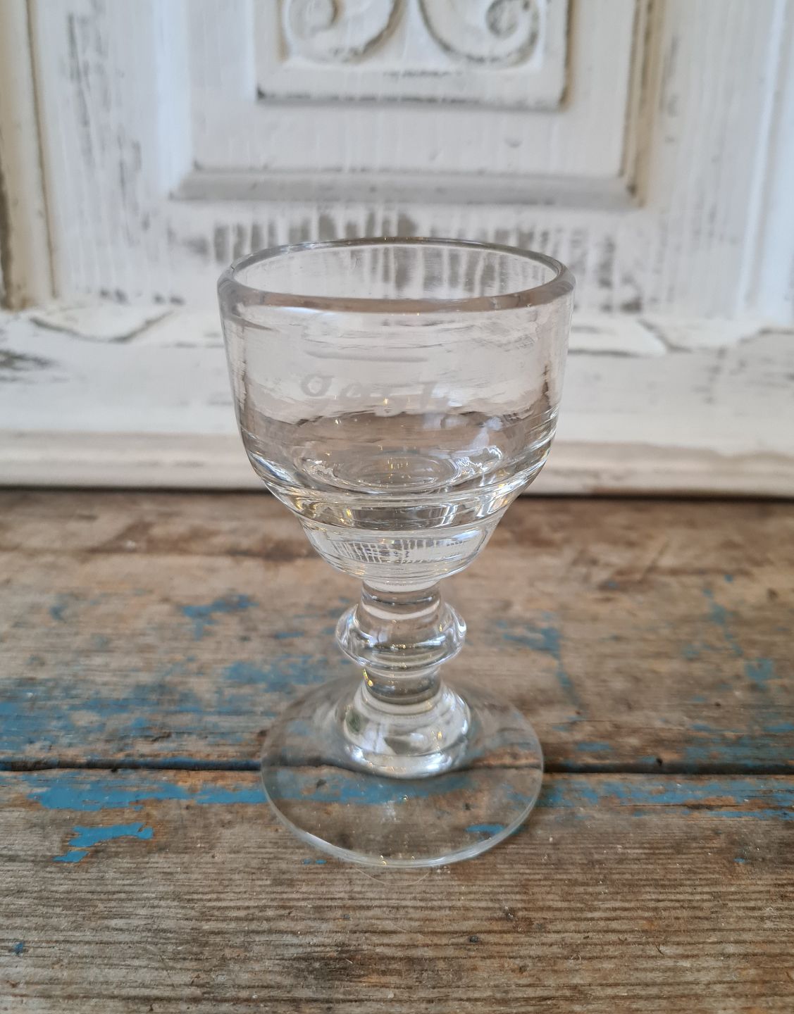 Vinglas med kalkformet kumme og knap på stilken - matslebet måleenhed 0,05L