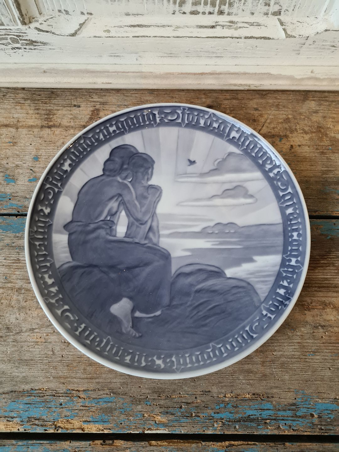 Royal Copenhagen Fredsplatte 1919 For anden gang jord af havet grøn og herlig ser opstige - Vøvlens spådom.