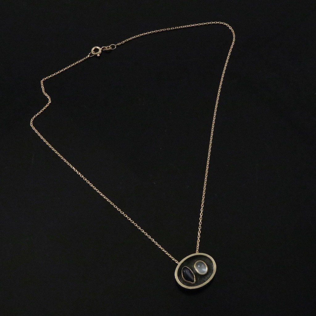 Ole Waldemar Jacobsen. Vedhæng i 14k guld med Opal og månesten - 1966.