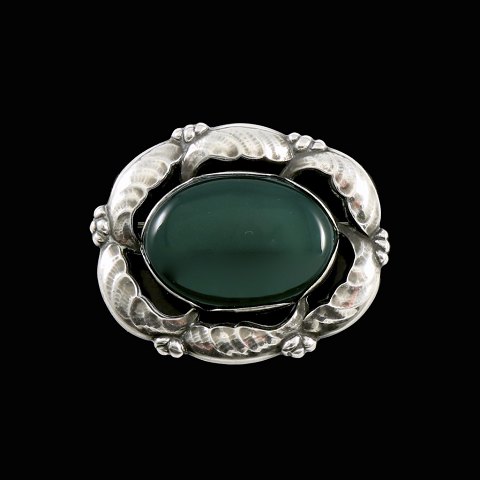 Georg Jensen. Broche i sterlingsølv med grøn agat #130.