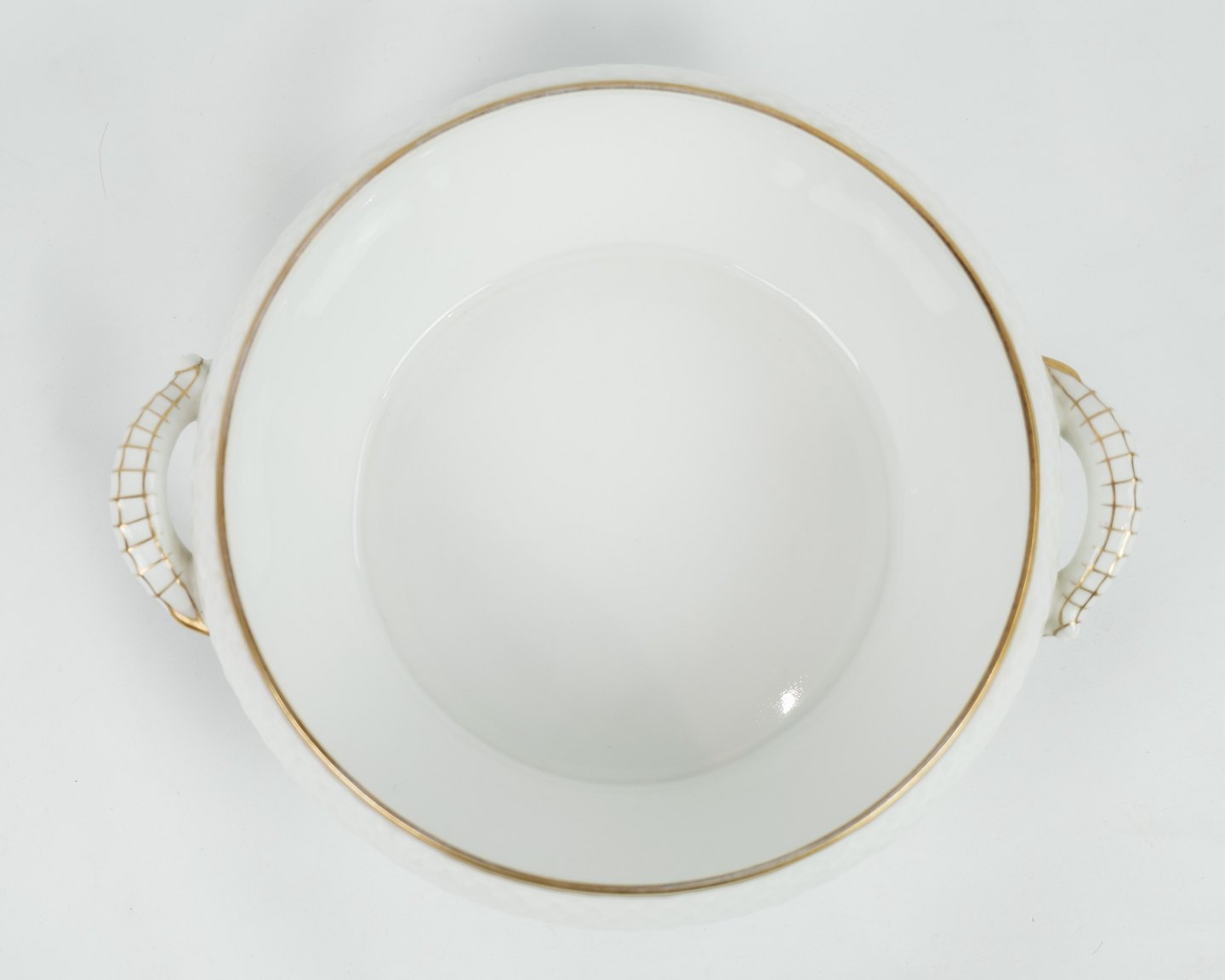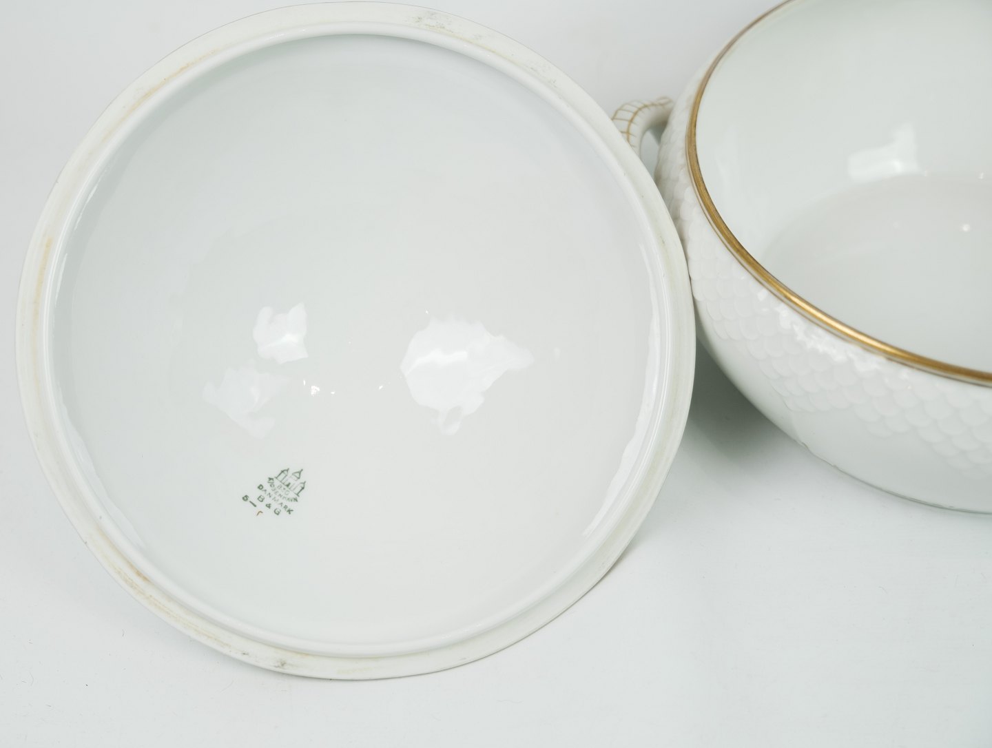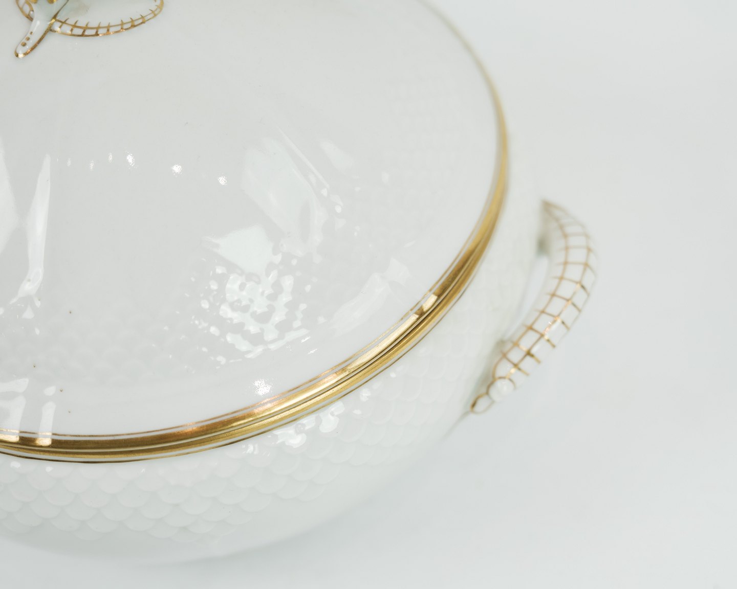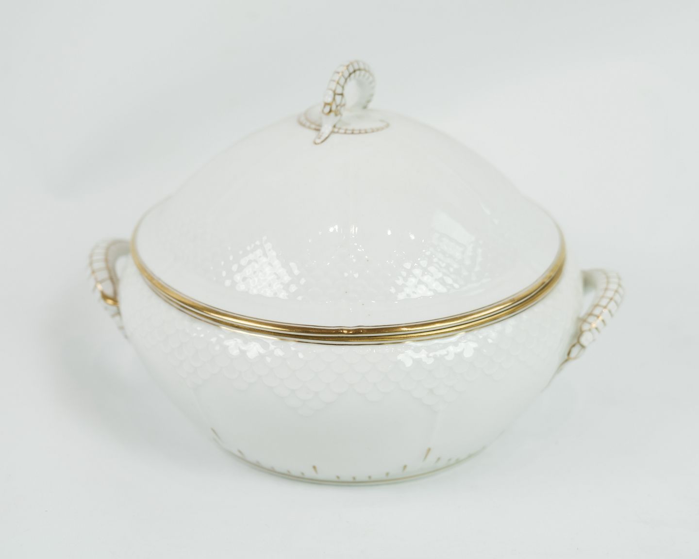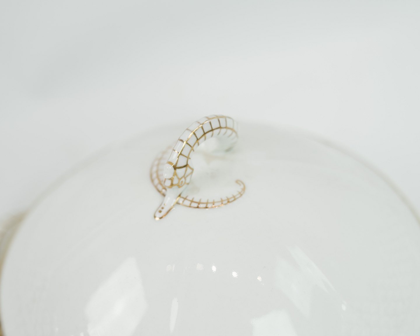 En låg terrin fra Bing og Grøndahl med mønstret Hartmann pryderet med håndtag af søhest.