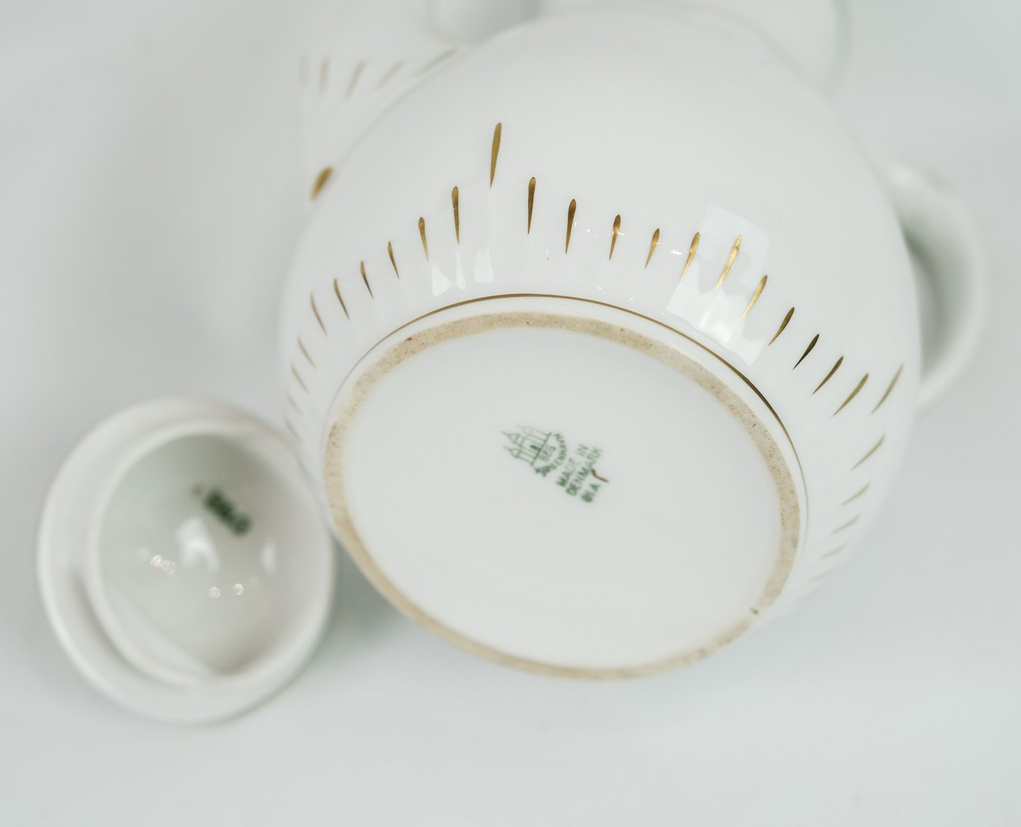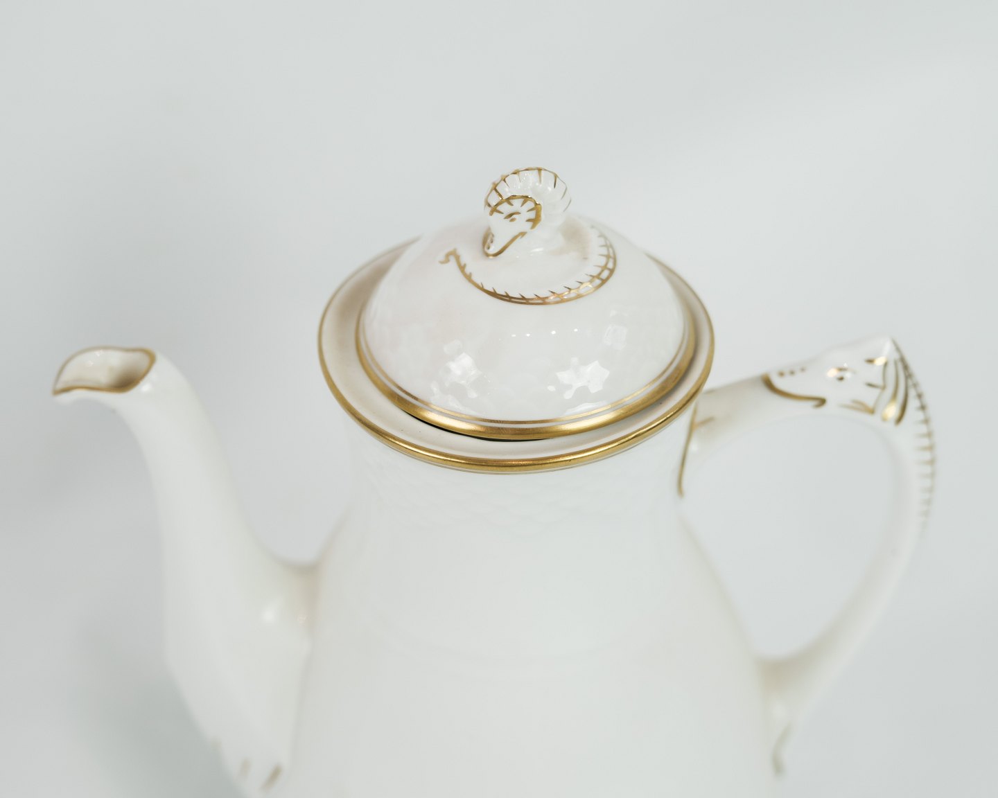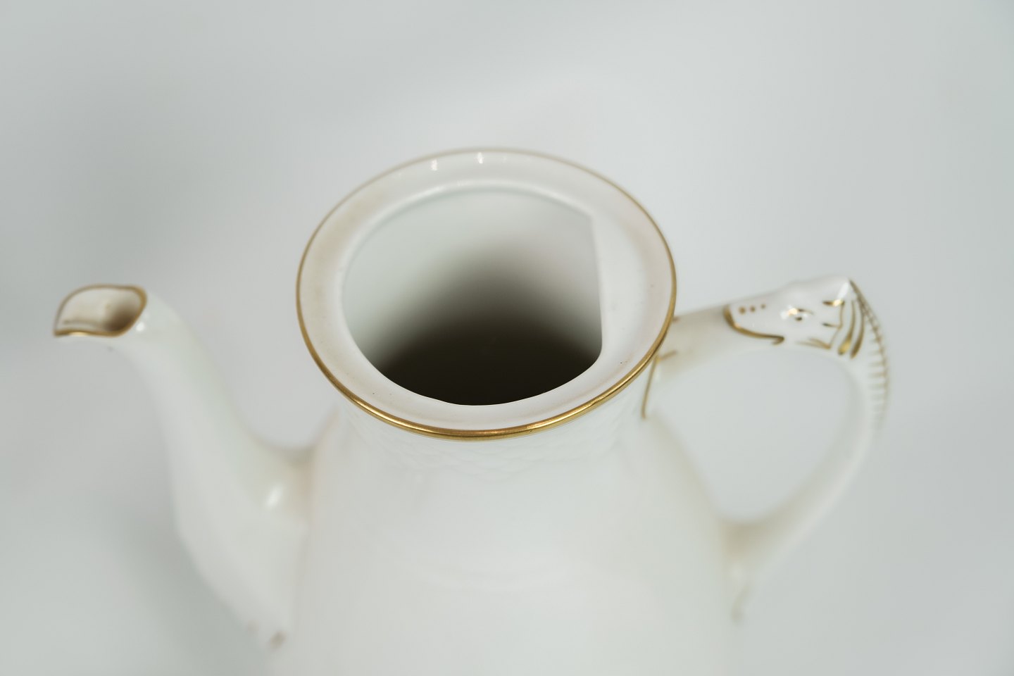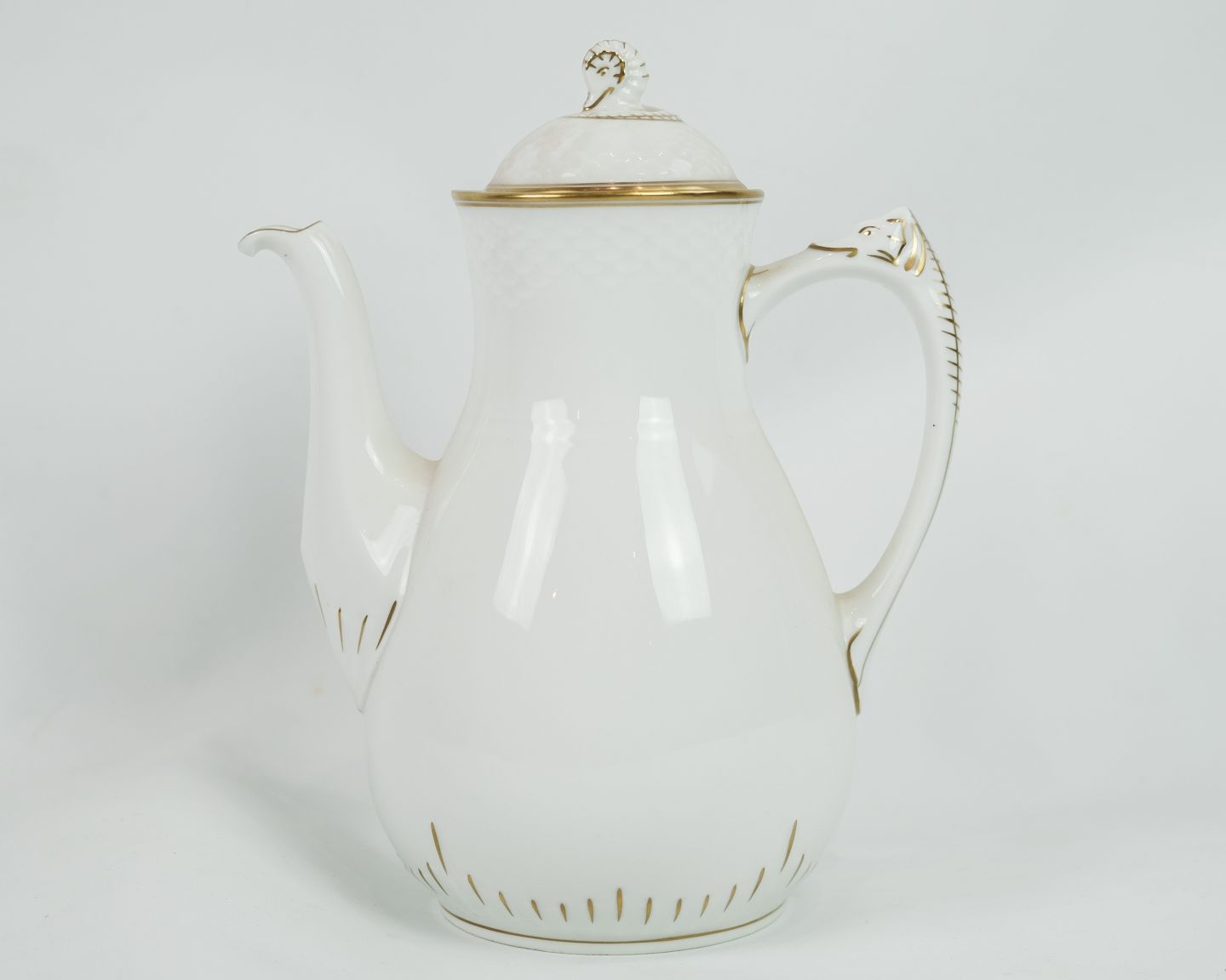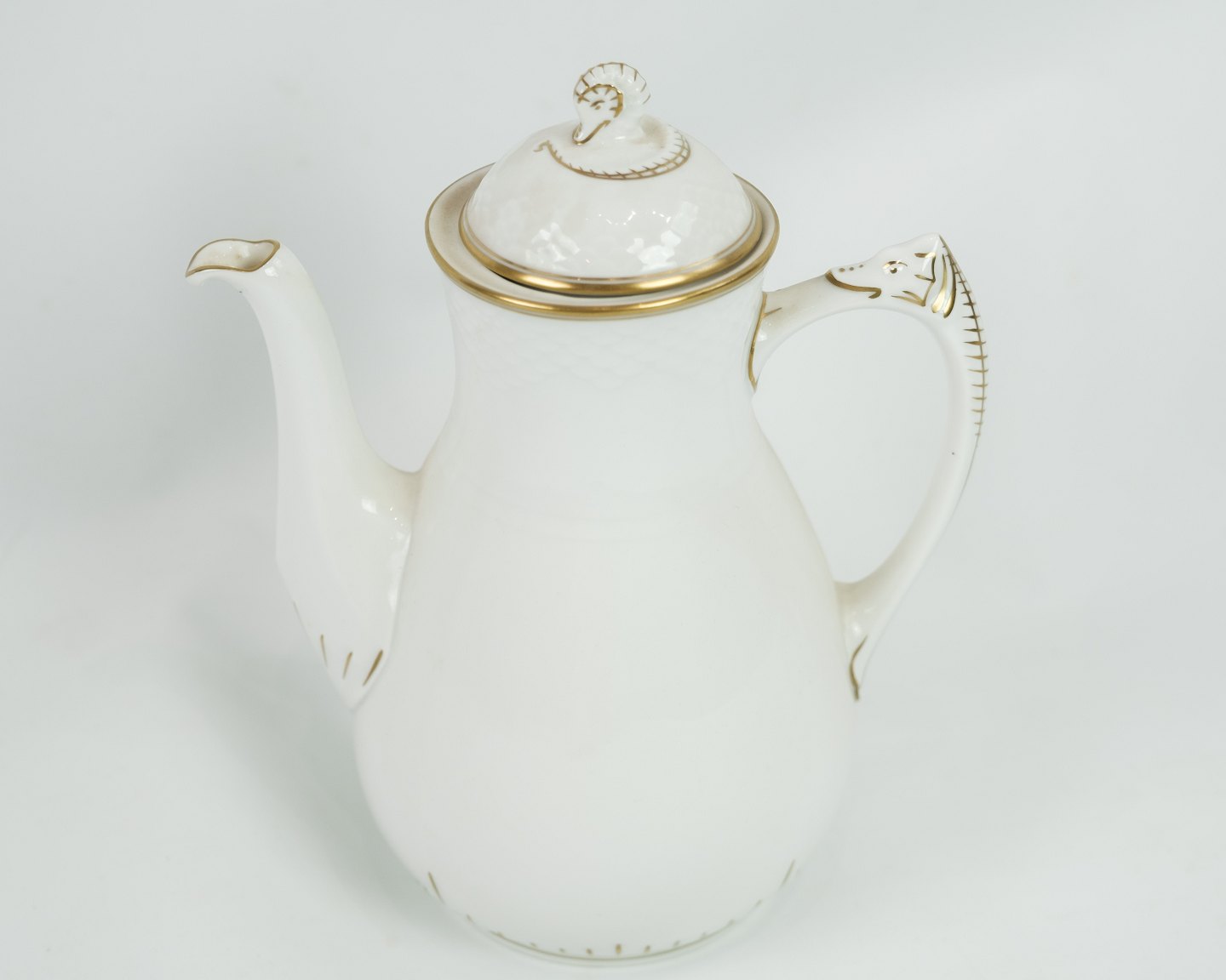 Kaffekande fra Bing & Grøndahl i mønstret Hartmann. Låget er prydet med en søhest og står fint i guldet.