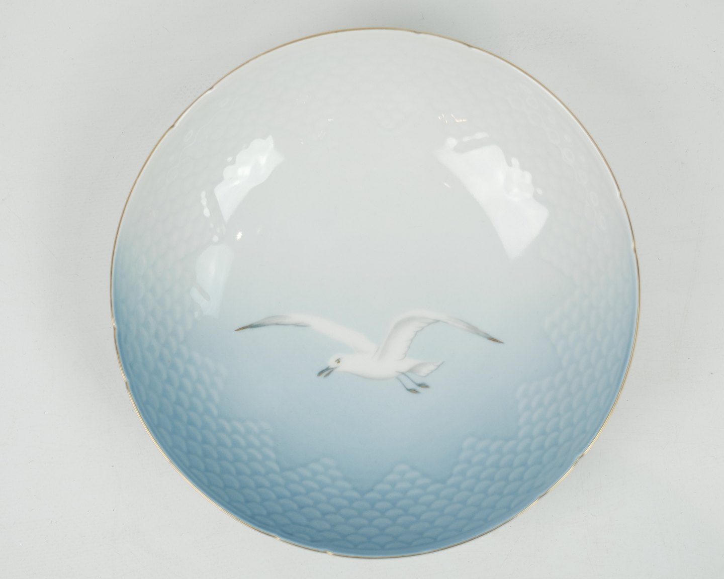 Rund skål fra Bing & Grøndahl fra stellet måge med guldkant. Står fint stand med flot guldkant.