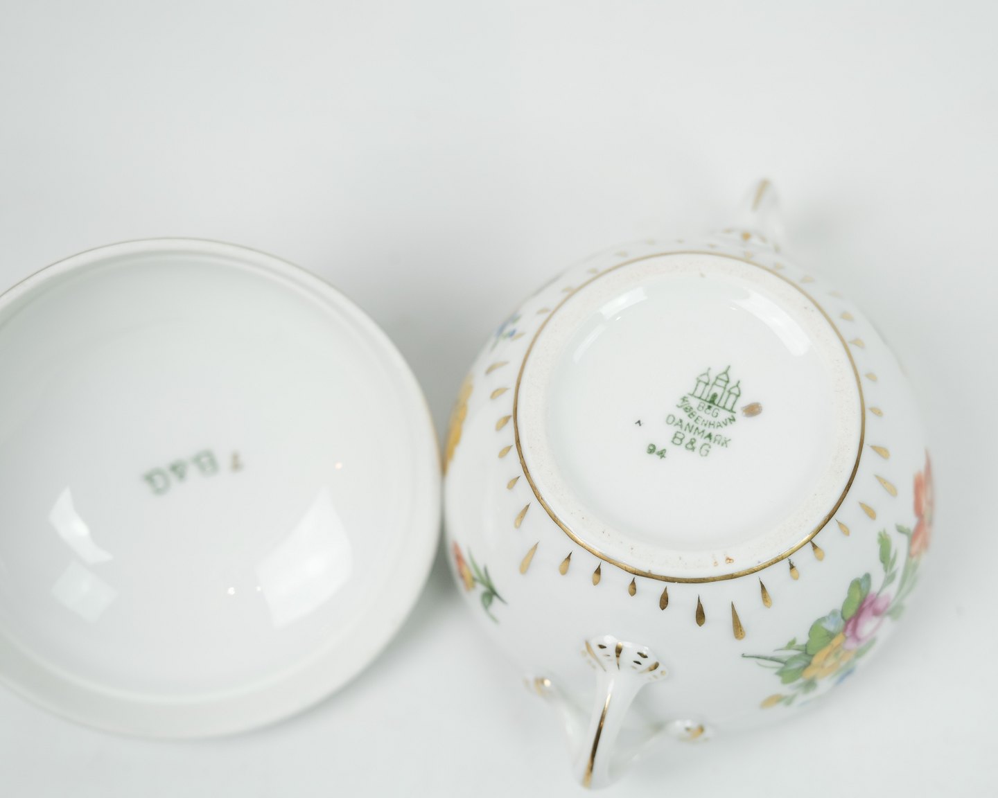 Bing og Grøndahl sukkerskål med søhest i mønstret saksisk blomst nr. 94.