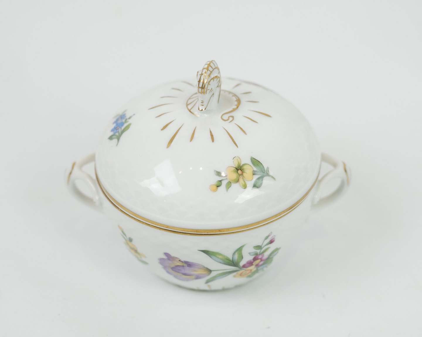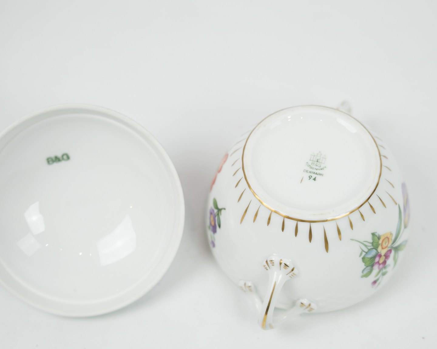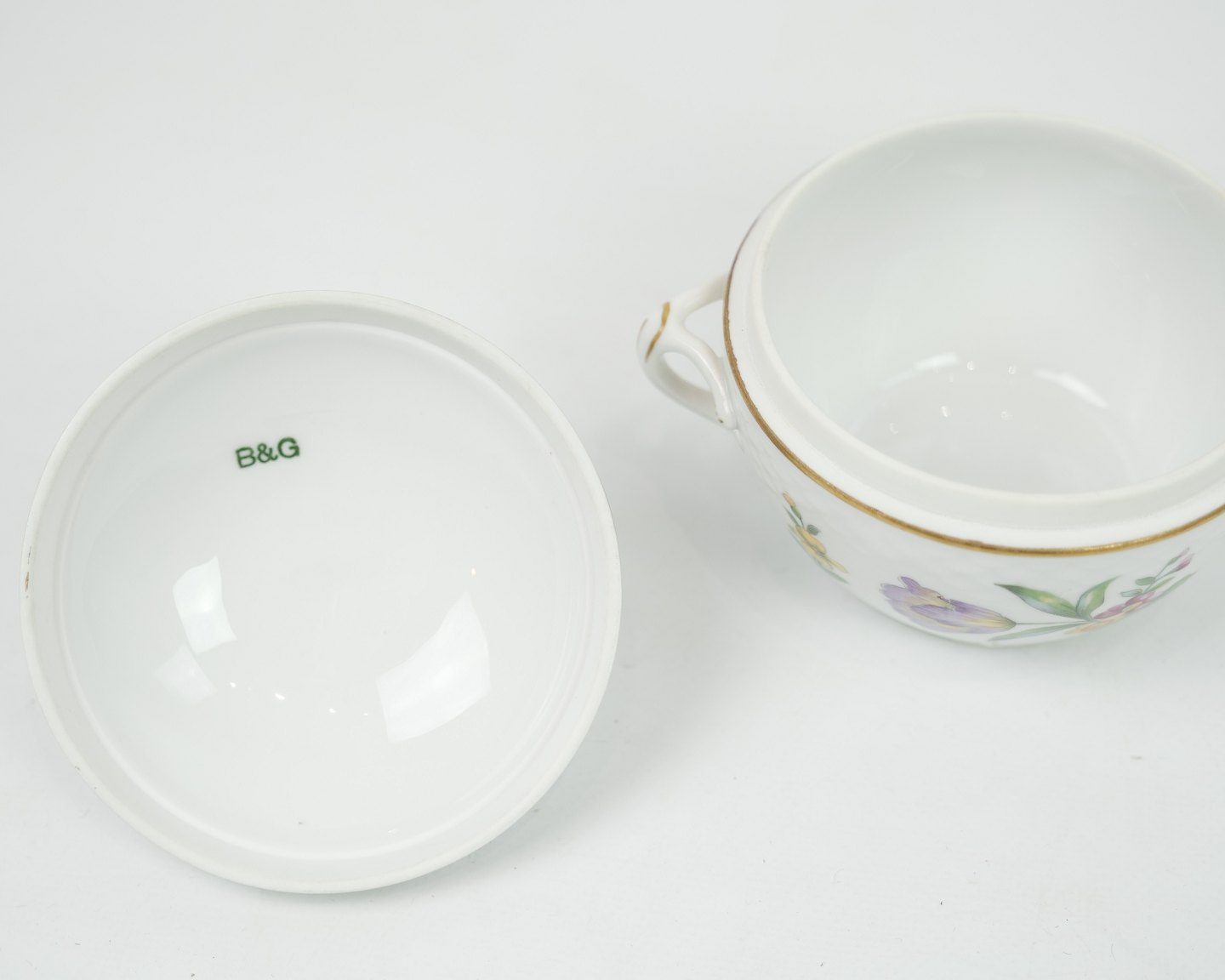 B&G sukkerskål dekoreret med håndmalet blomster med intakt guldkant nr. 94