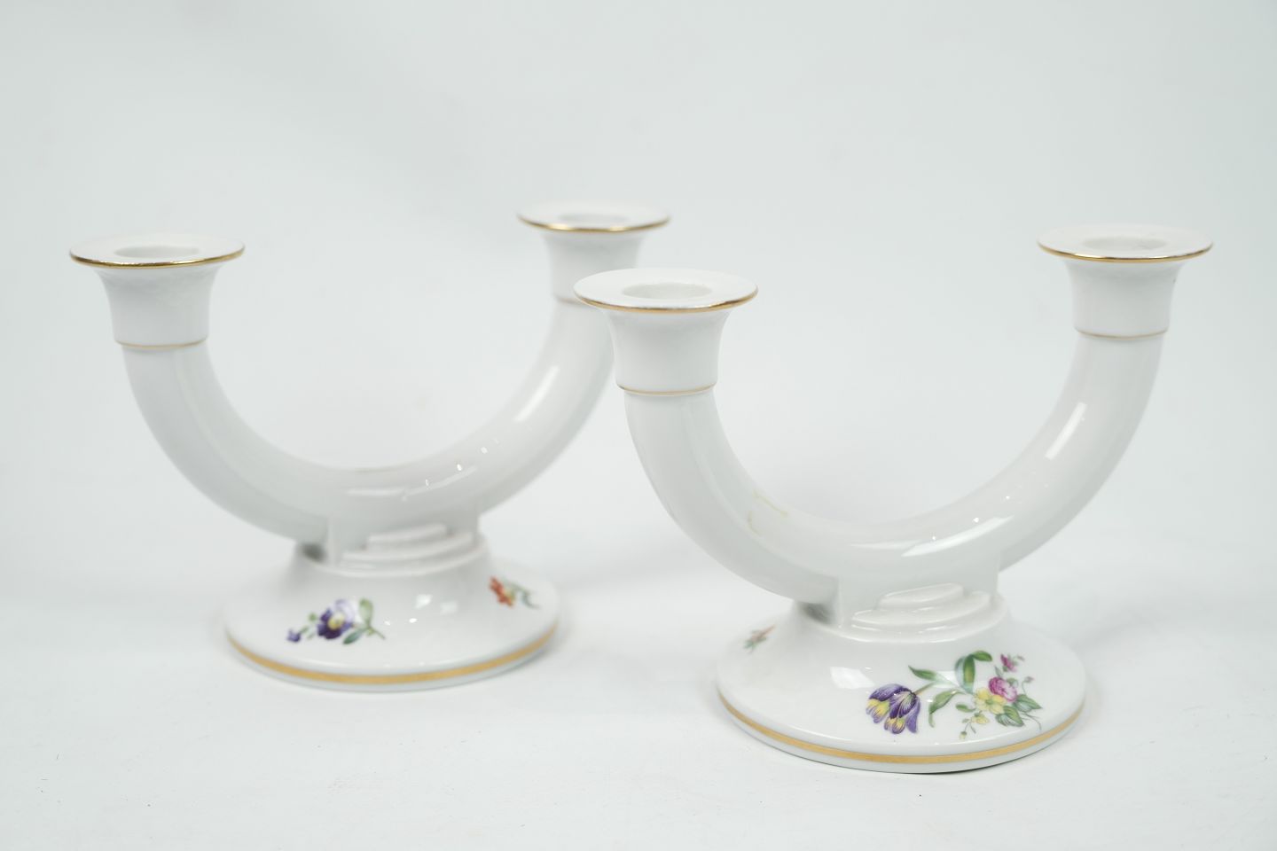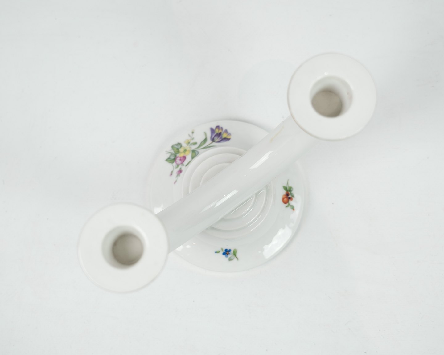 Bing & Grondahl a pair of double candlesticks in the frame Saxon flower no.235. Fully intact and looks great in gold