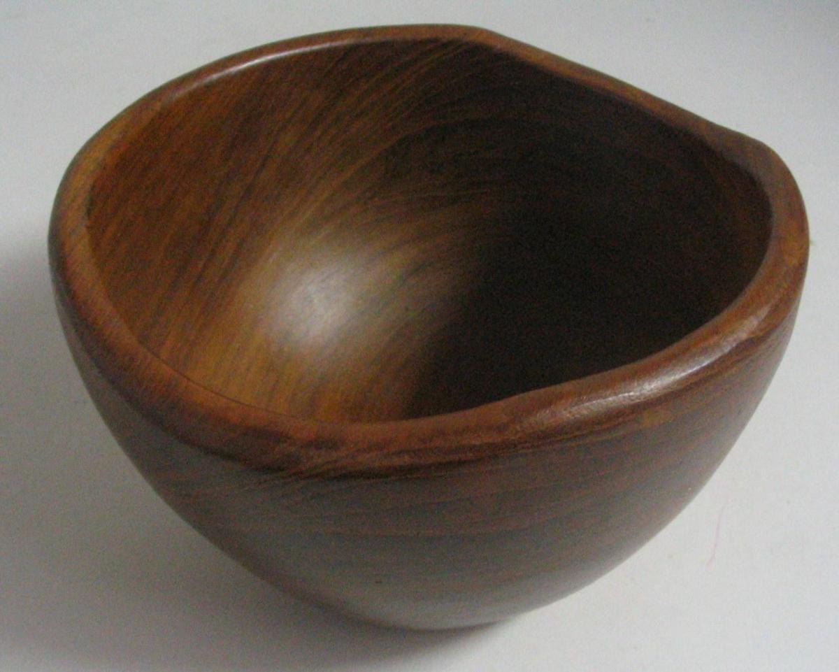 Teakskål, Danmark, 1960' erne. Med hvælvet kant. Utydelig stemplet. H.: 10 cm. Dia.: 15 cm.