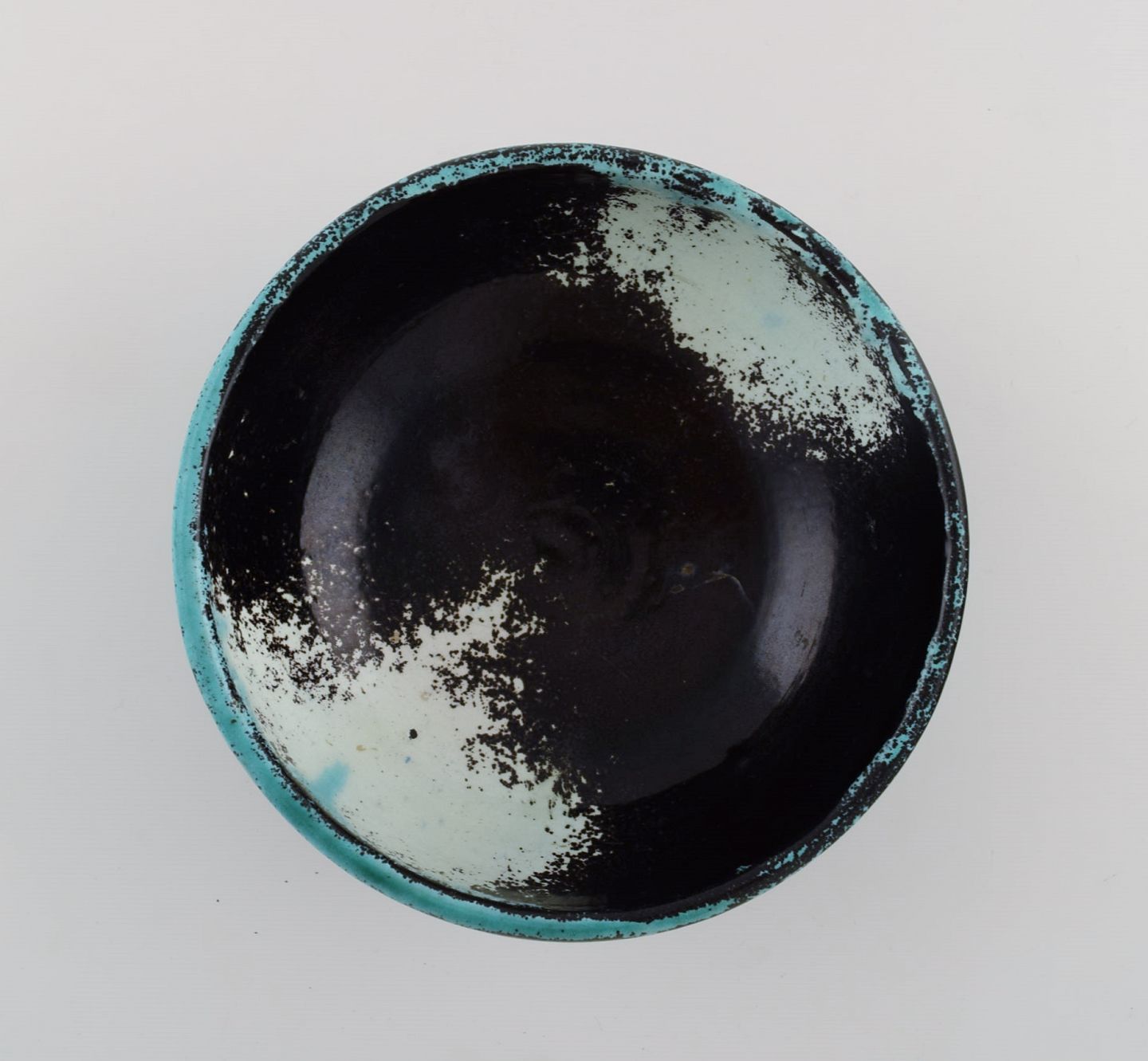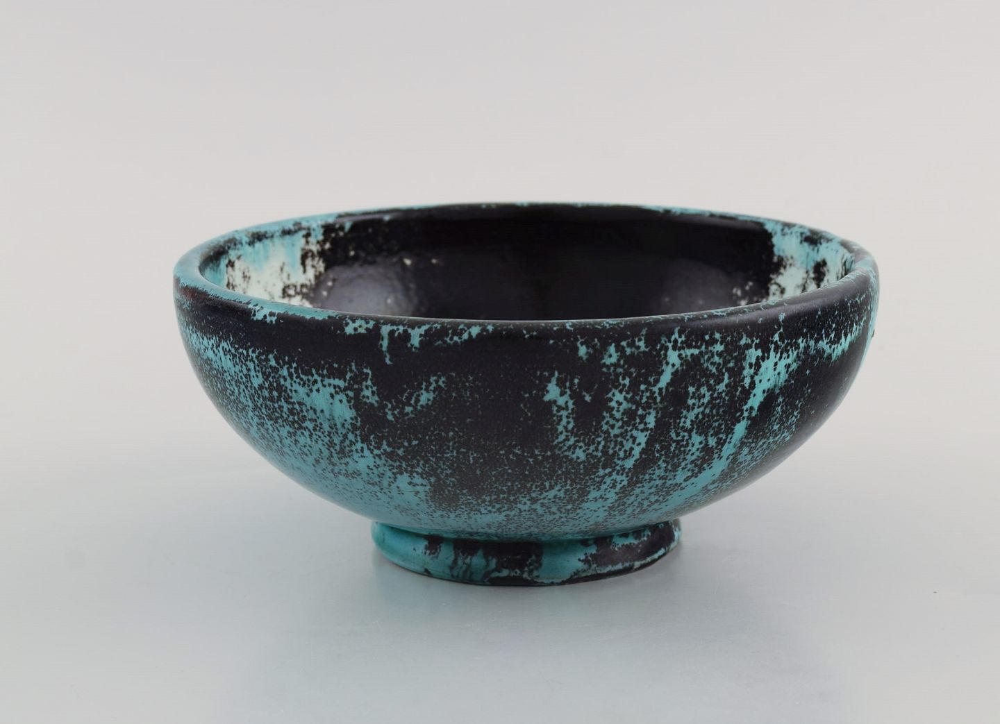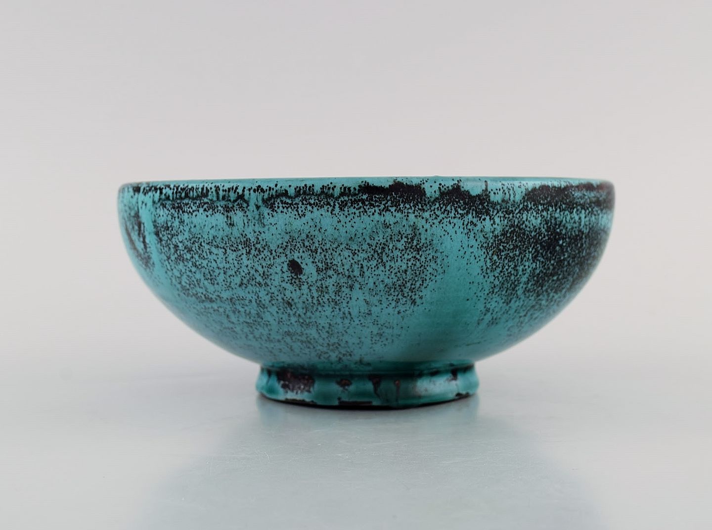 Svend Hammershøi for Kähler, HAK. Skål i glaseret stentøj. Smuk sortgrøn dobbeltglasur. 1930/40'erne.