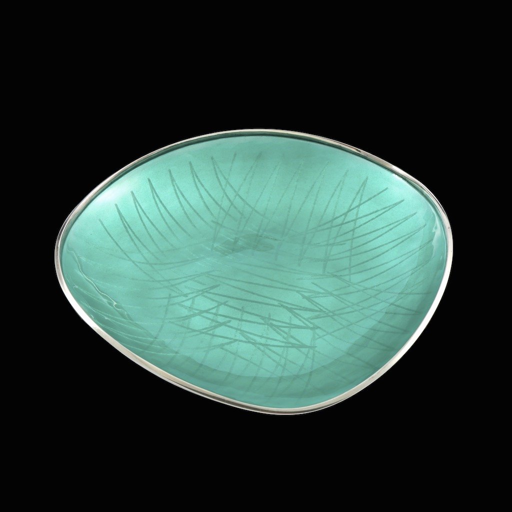 A. Michelsen. Sterling Silver Bowl with green Enamel - Eigil Jensen 1962.