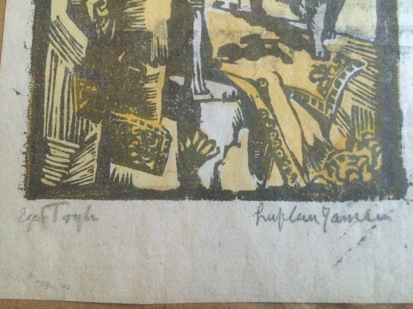 Rammen lidt defekt - lille fugtskade på passepartout.