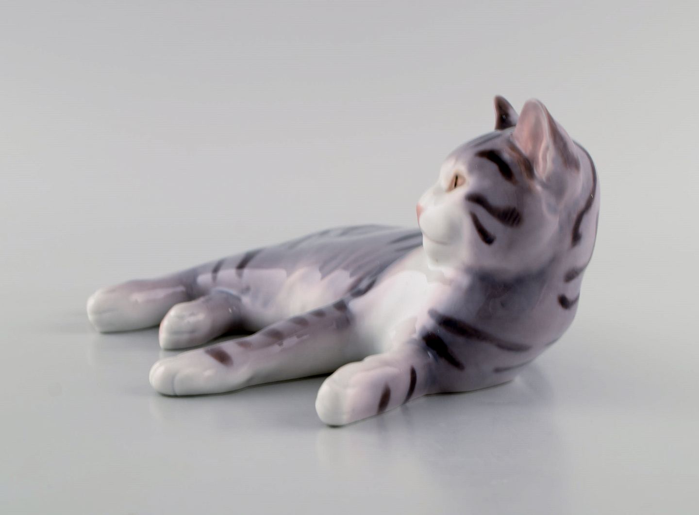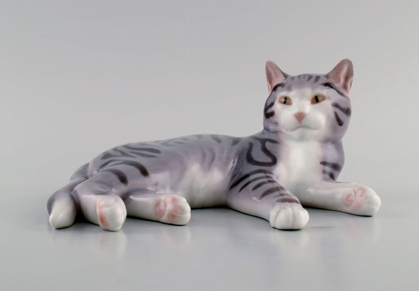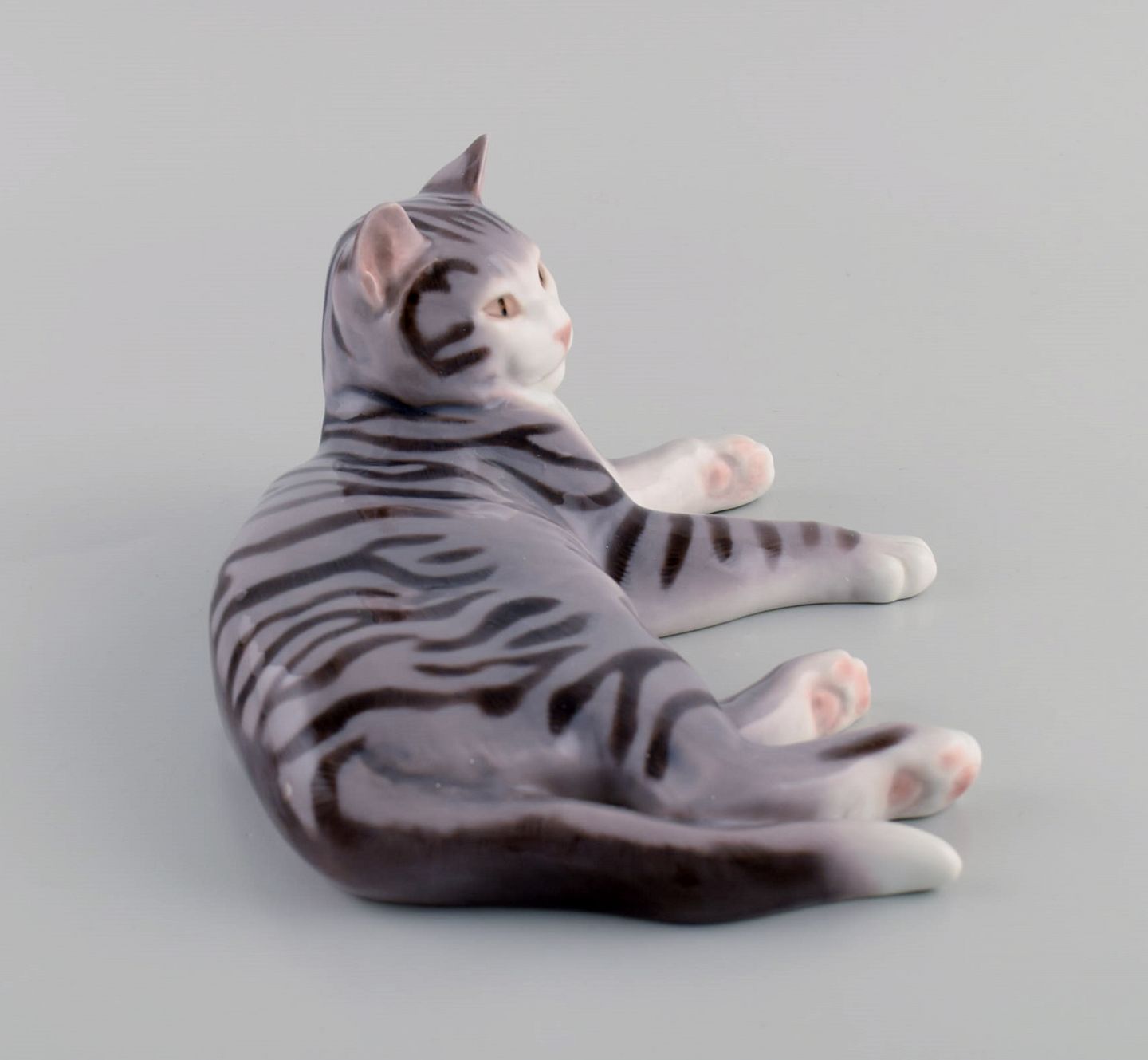 Sjælden Bing & Grøndahl porcelænsfigur. Liggende kat. Modelnummer 2236. Tidligt 1900-tallet.
