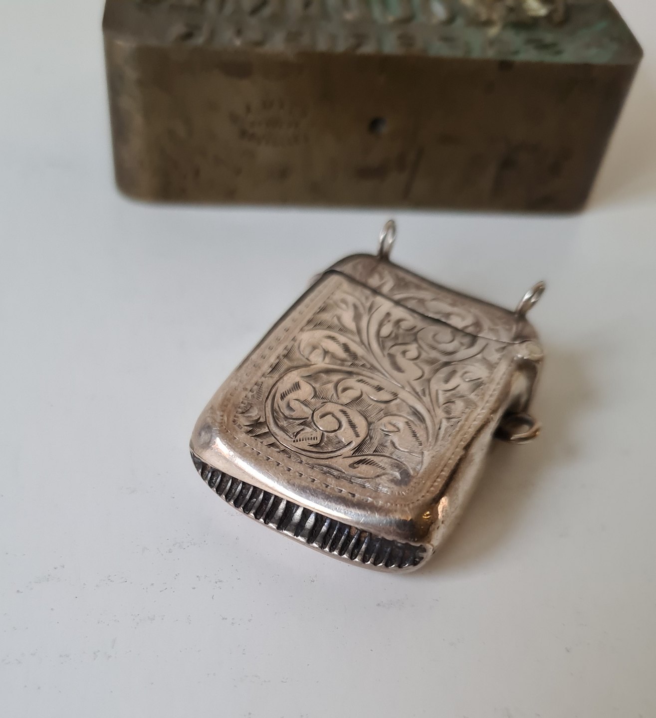English matchbox in silver by M.Bros from 1905 can be worn in a chain. Stamp: M.Bros - Birmingham - 1905 - Sterling