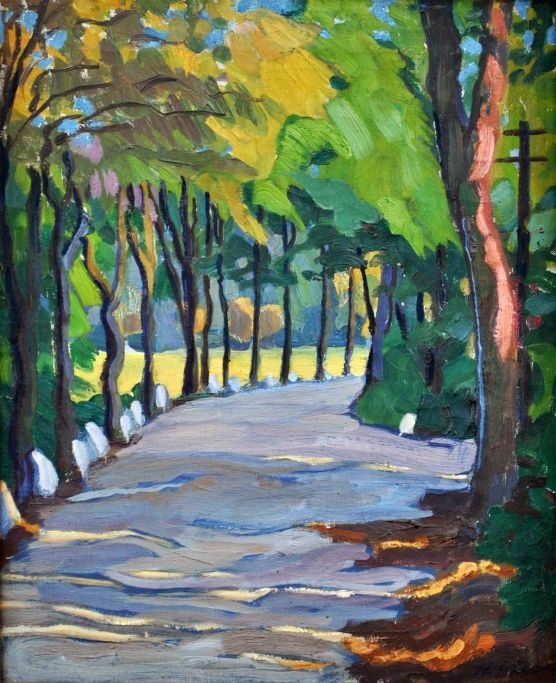 Schubert, Hanns (1887 - 1963) Tyskland. En skovvej. Olie på lærred. Signeret H. Schubert. 53 x 43 cm.