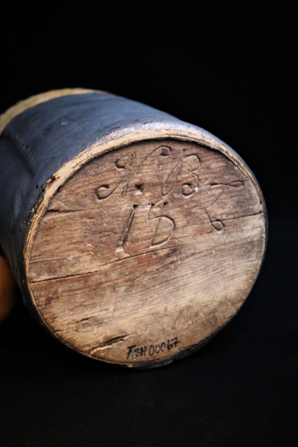 Svensk 1800 tals krukke i birkebark med træbund til opbevaring.